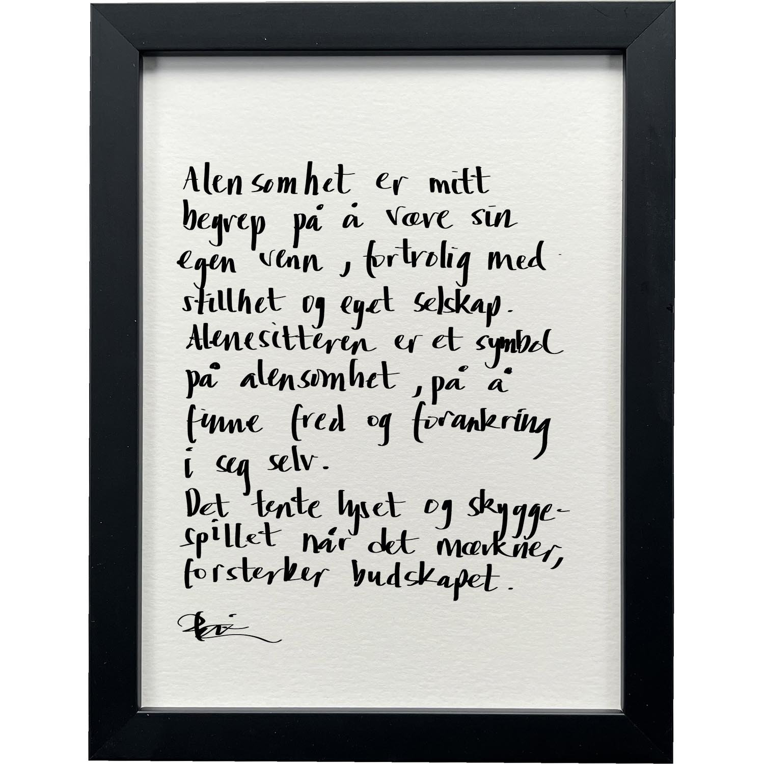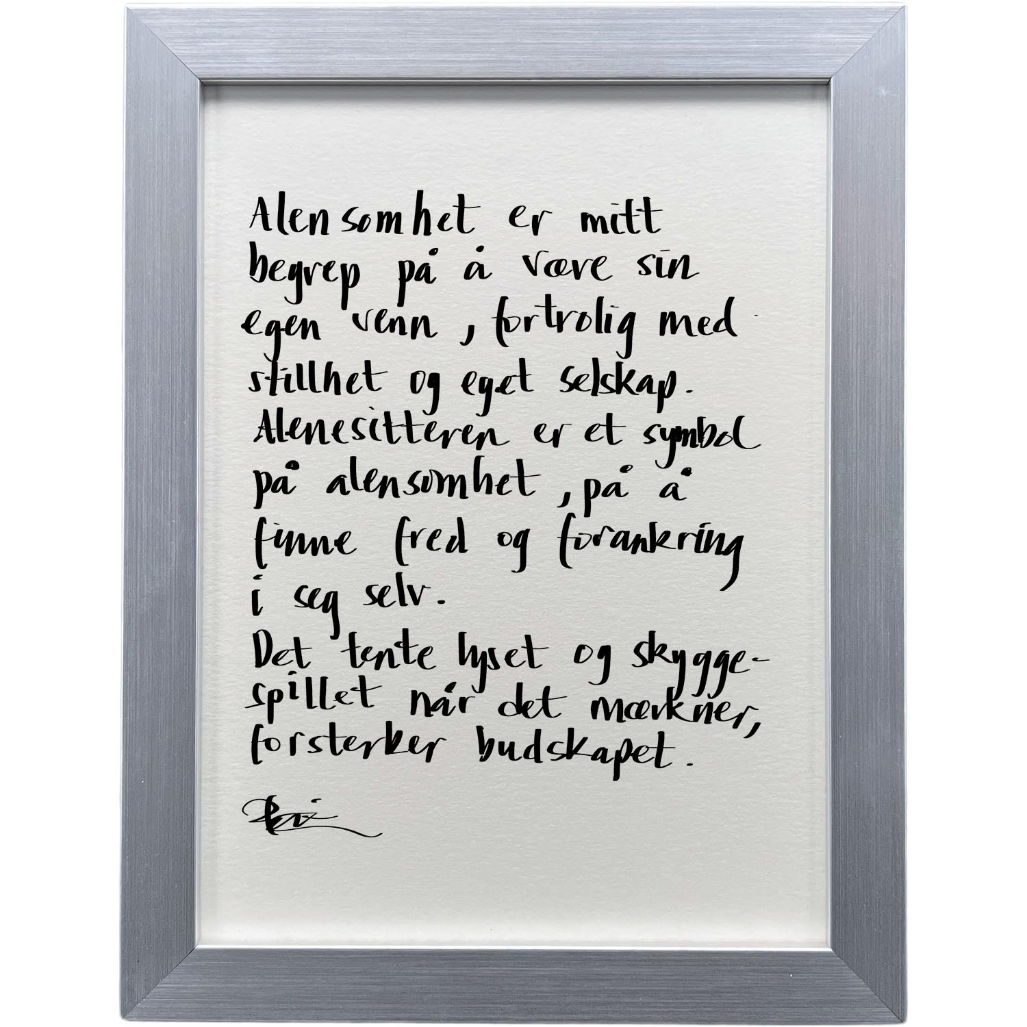 Teksten kan leveres ferdig innrammet fra min profesjonell rammemaker Innramming.no: