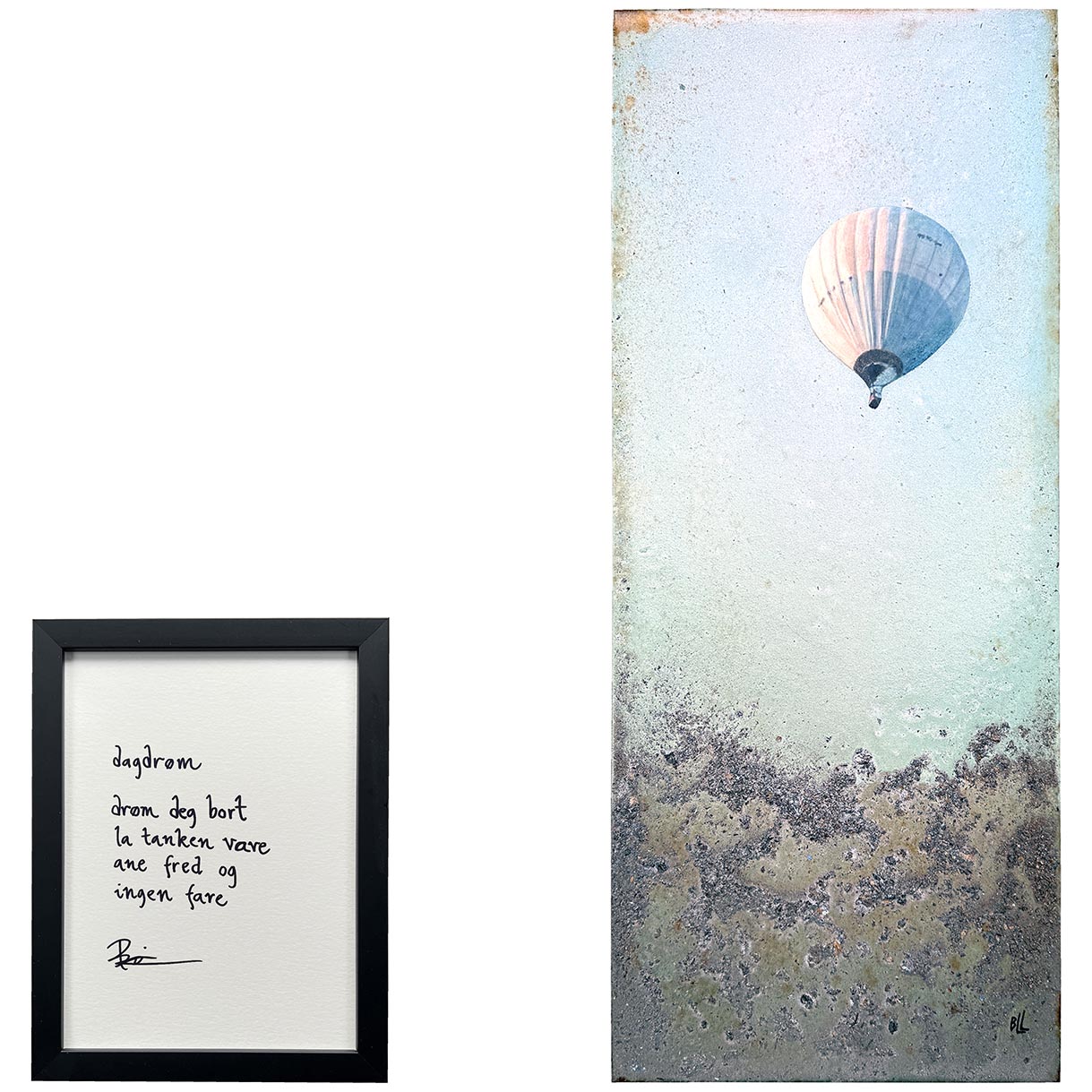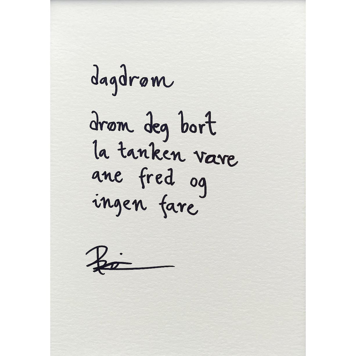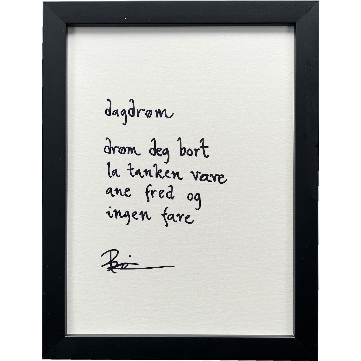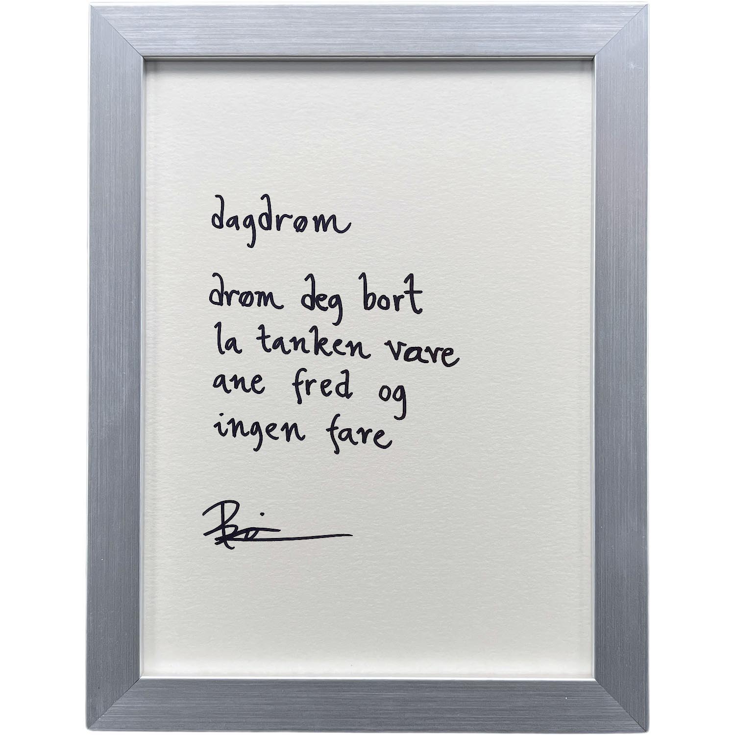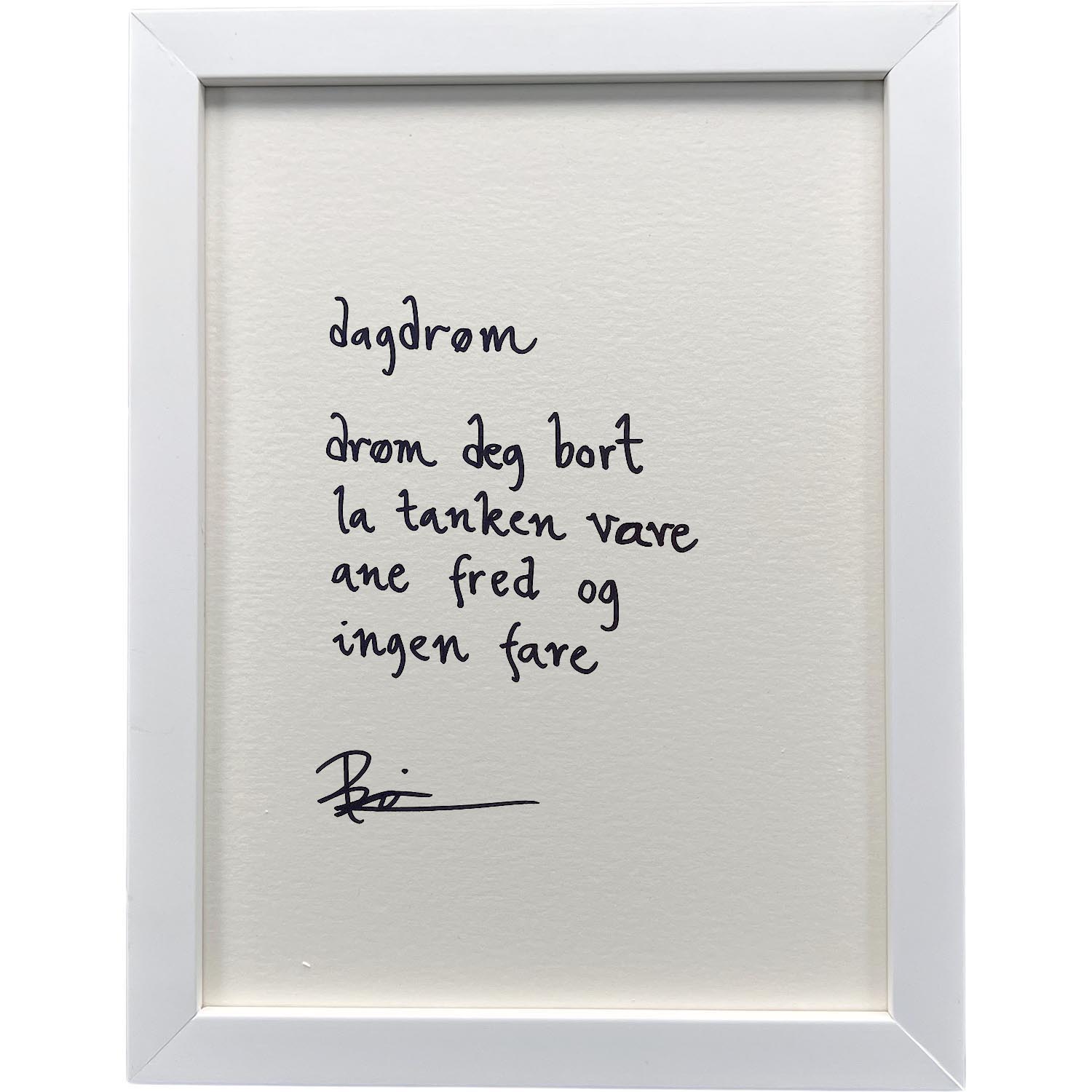 Håndskrevet og signert dikt på passepartout-papir. Passer fint til å henge ved siden av motivet det er skrevet til, eller settes på et bord eller en kommode.