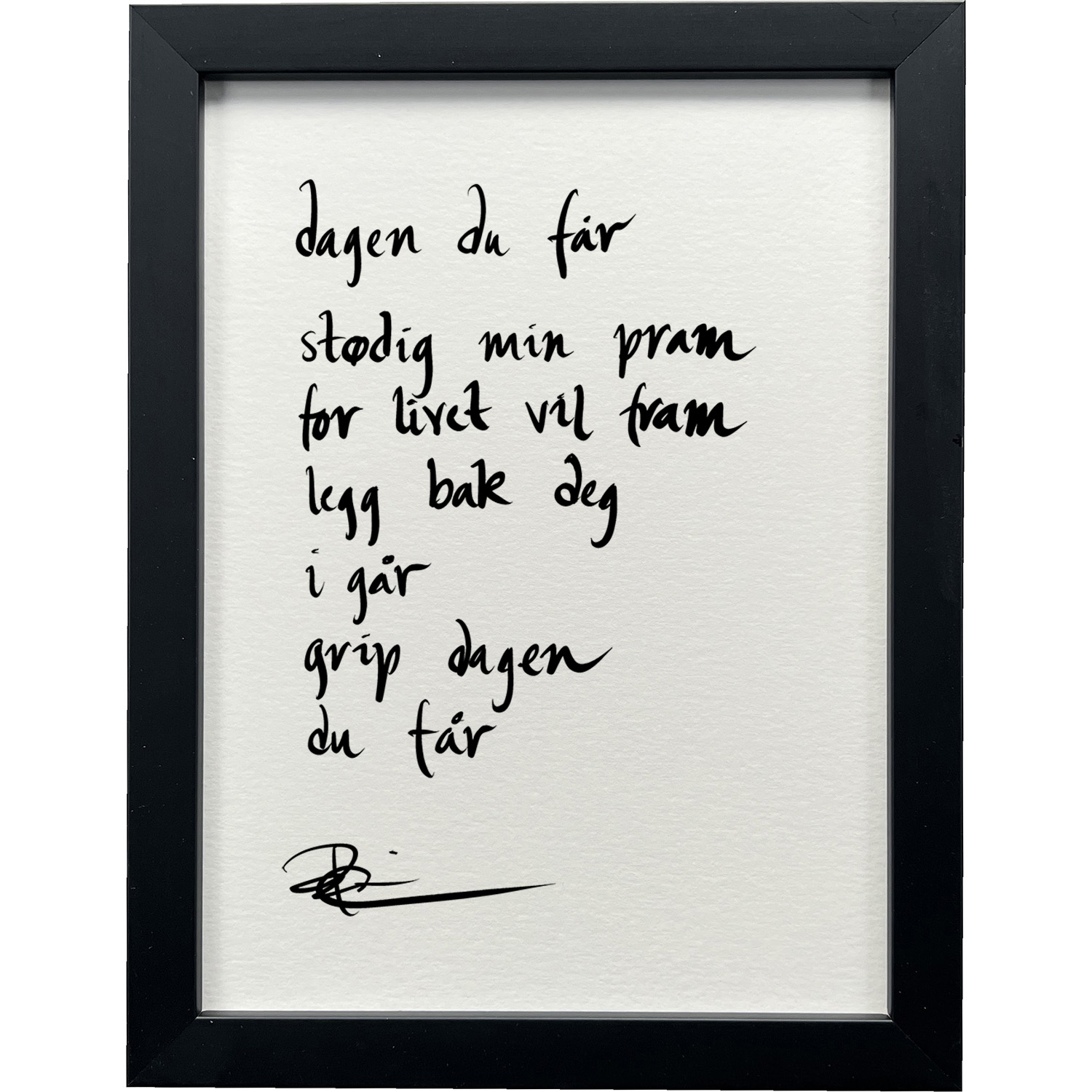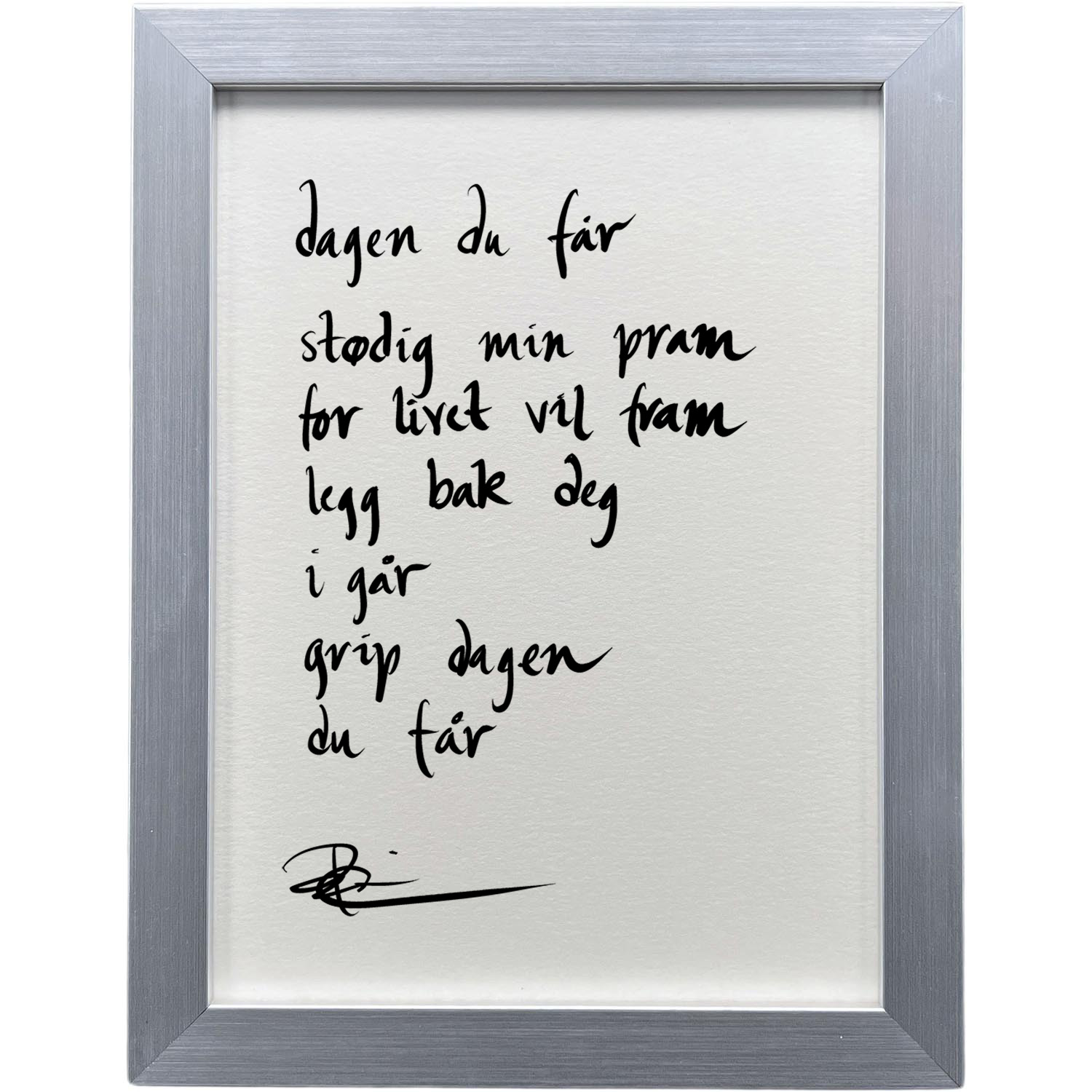 Diktet kan leveres ferdig innrammet fra min profesjonell rammemaker Innramming.no: