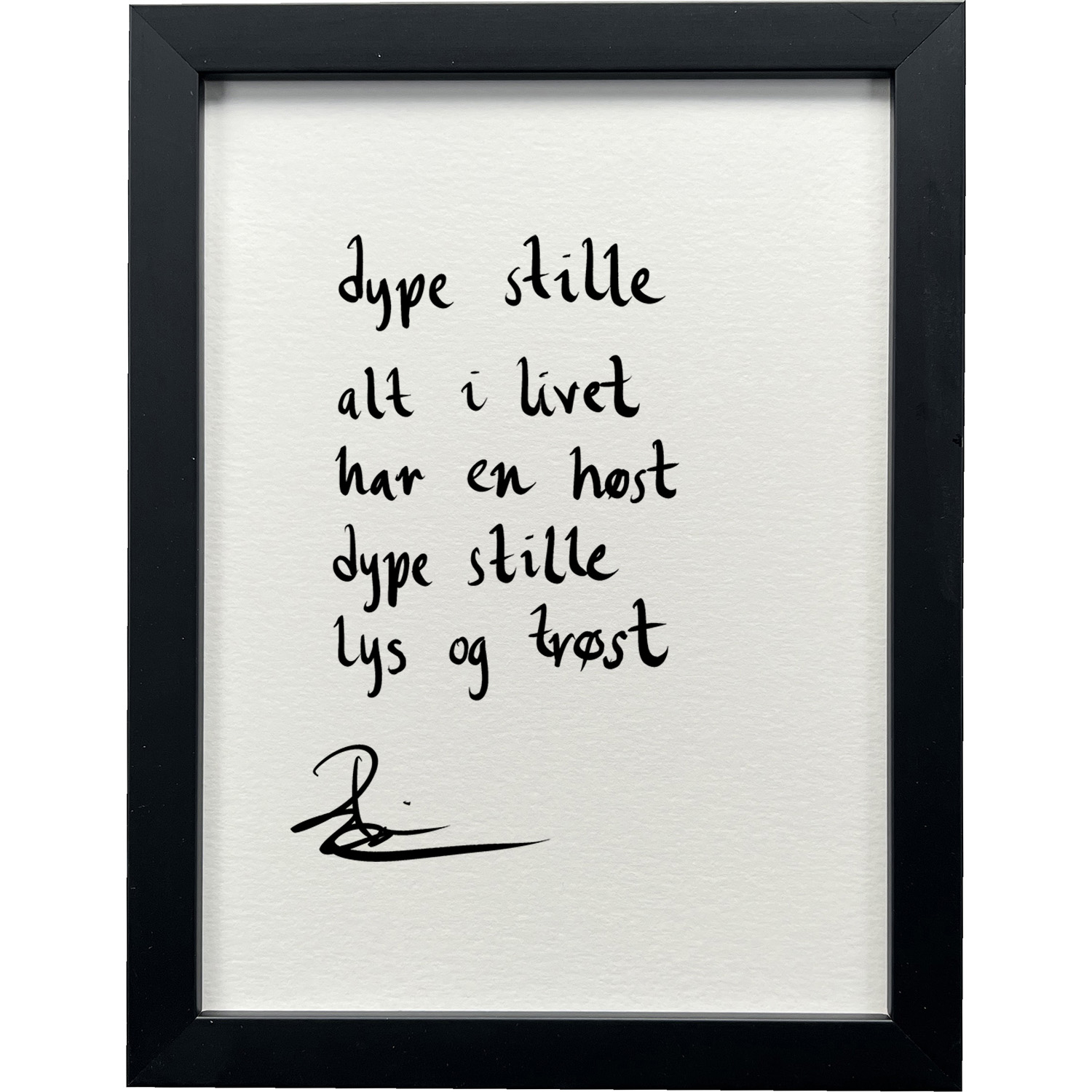 Håndskrevet og signert dikt på passepartout-papir. Passer fint til å henge ved siden av motivet det er skrevet til, eller settes på et bord eller en kommode.