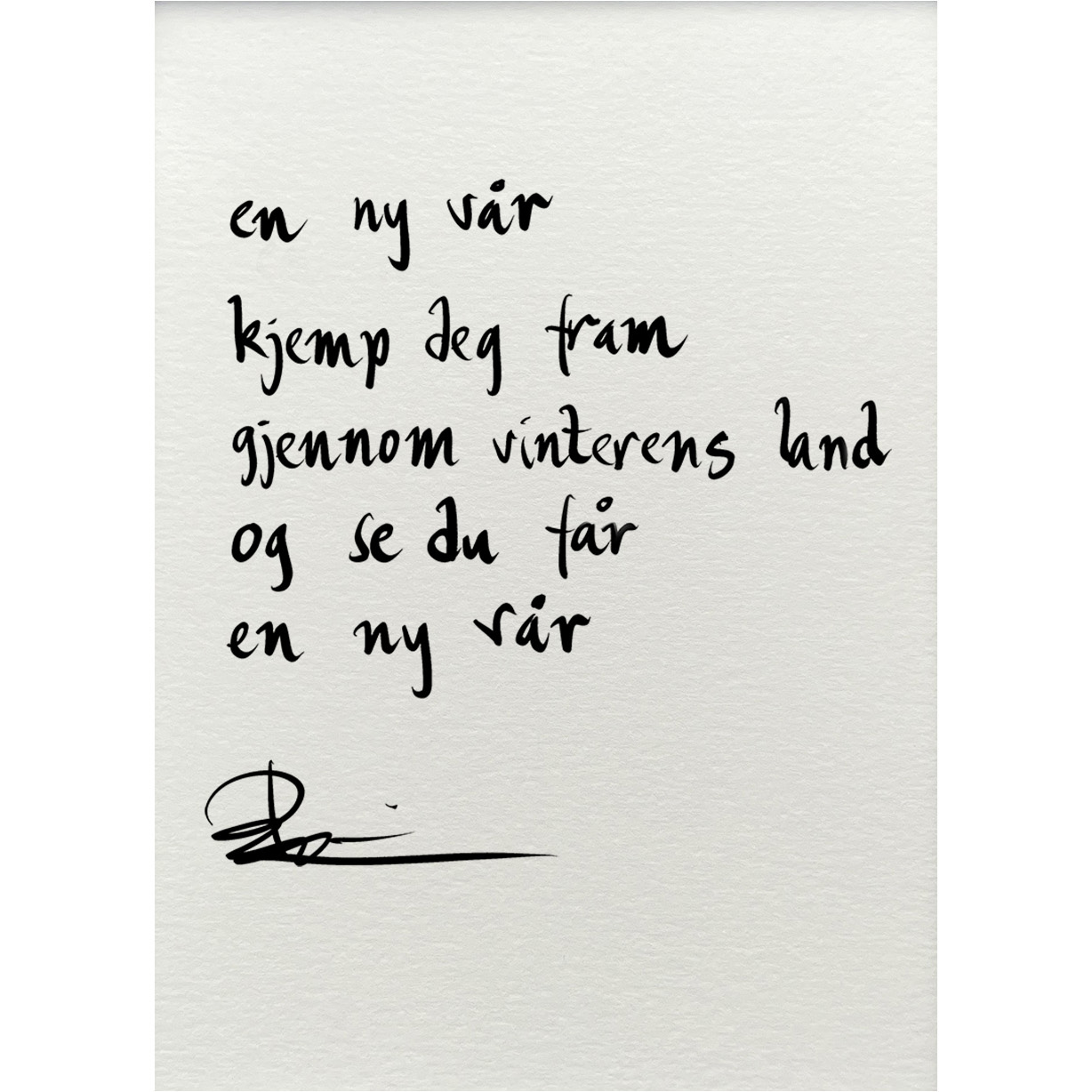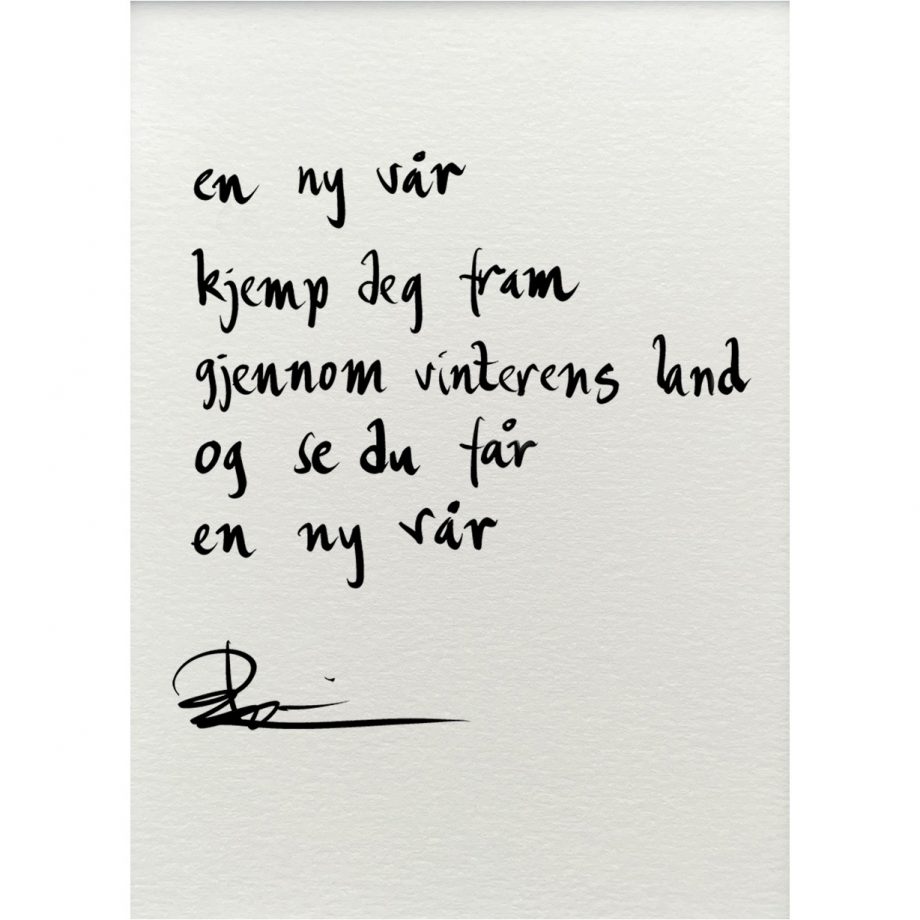 Håndskrevet og signert dikt på passepartout-papir. Passer fint til å henge ved siden av motivet det er skrevet til, eller settes på et bord eller en kommode.