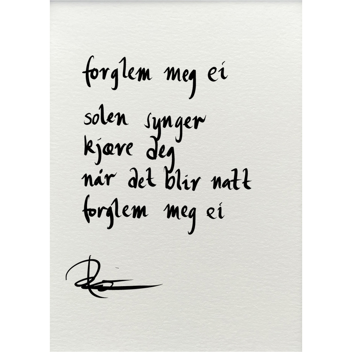 Håndskrevet og signert dikt på passepartout-papir. Passer fint til å henge ved siden av motivet det er skrevet til, eller settes på et bord eller en kommode.