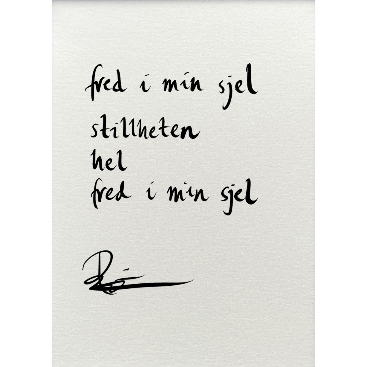 Håndskrevet og signert dikt på passepartout-papir. Passer fint til å henge ved siden av motivet det er skrevet til, eller settes på et bord eller en kommode.