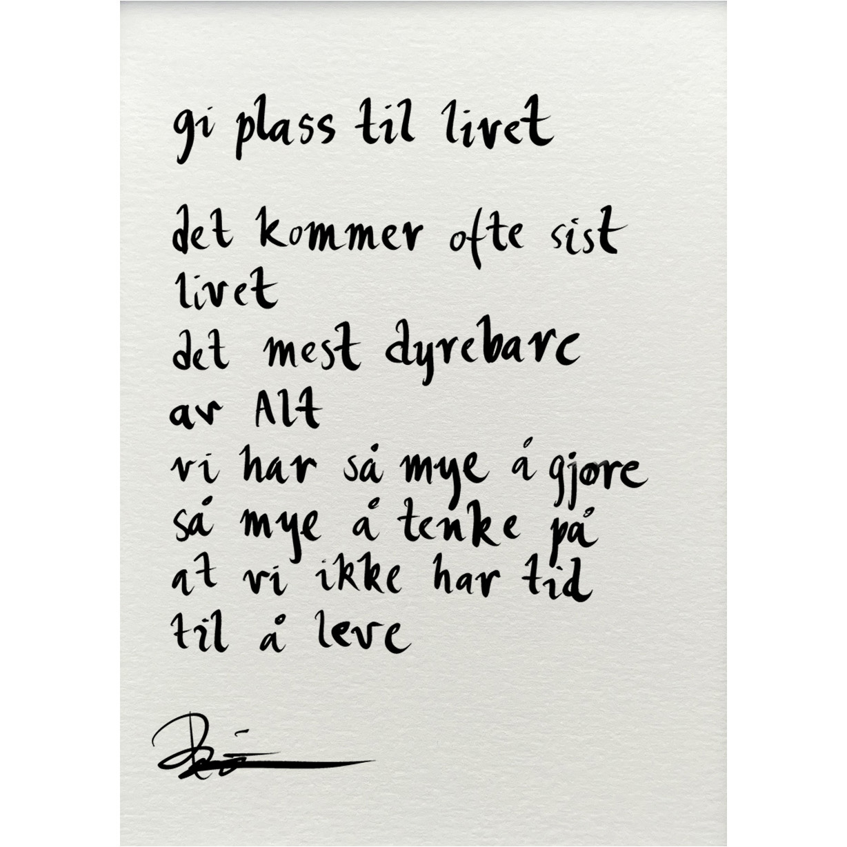Håndskrevet og signert dikt på passepartout-papir. Passer fint til å henge ved siden av motivet det er skrevet til, eller settes på et bord eller en kommode.