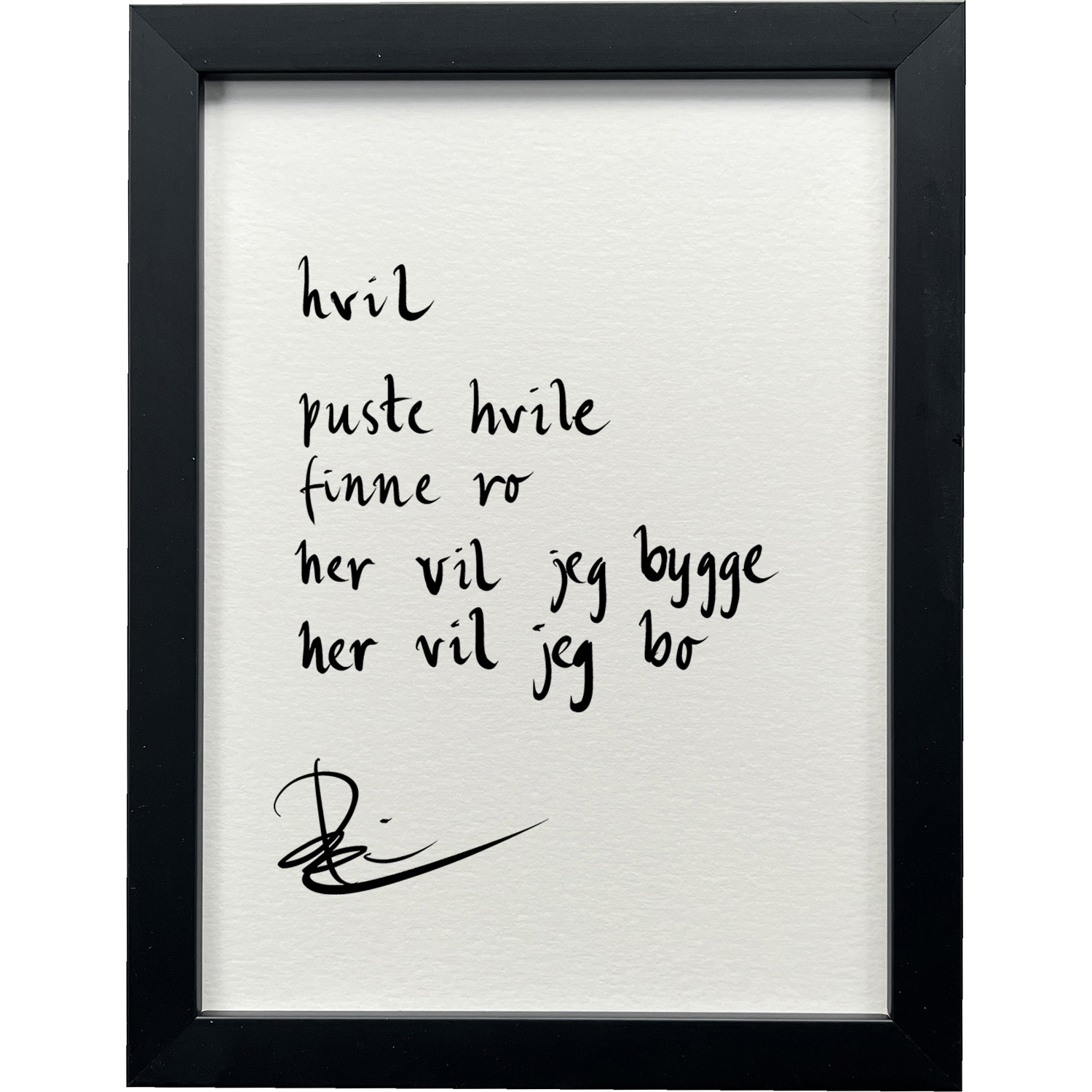 Diktet kan leveres ferdig innrammet fra min profesjonell rammemaker Innramming.no: