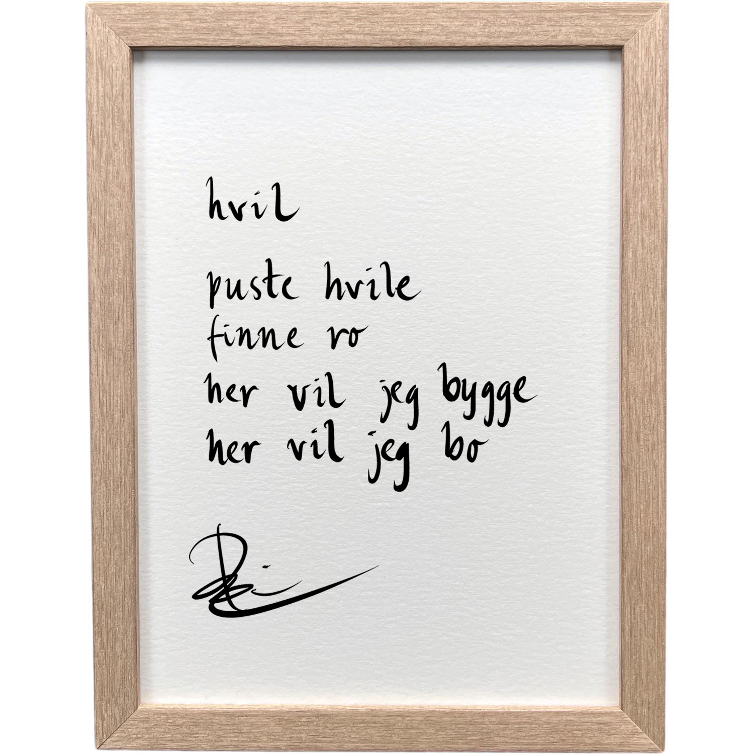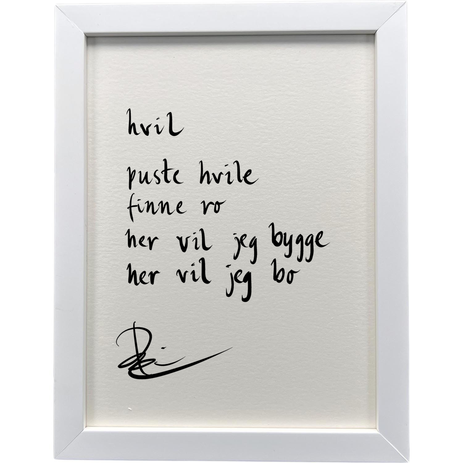 Hvit ramme 20 x 26 cm "hvil", dikt