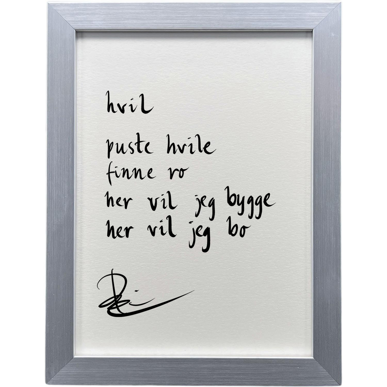 Sølvgrå ramme 20 x 26 cm "hvil", dikt