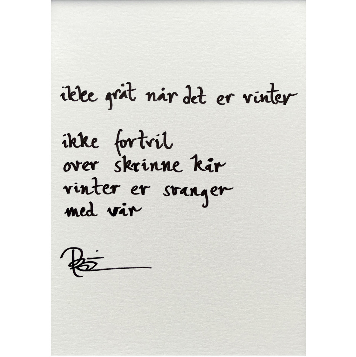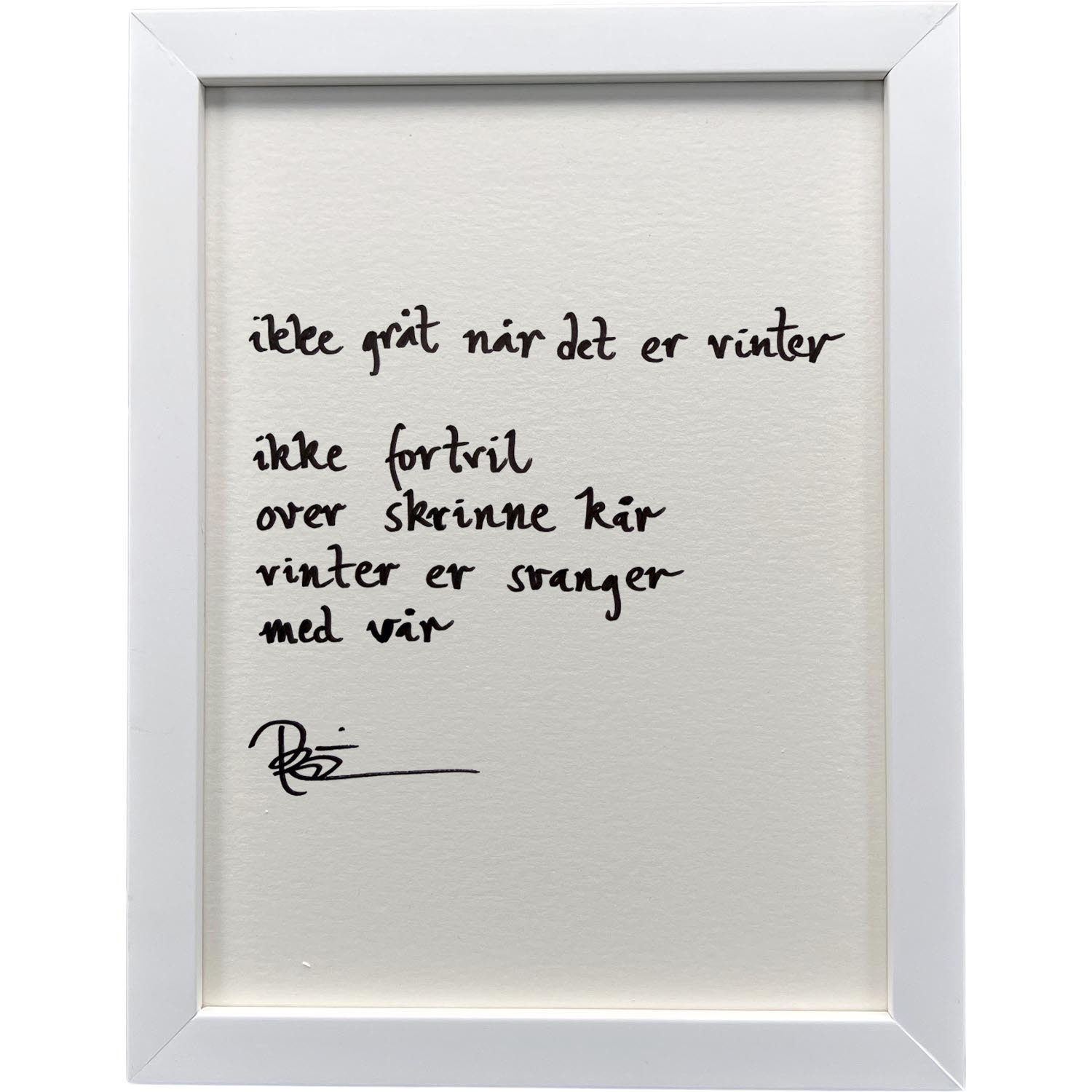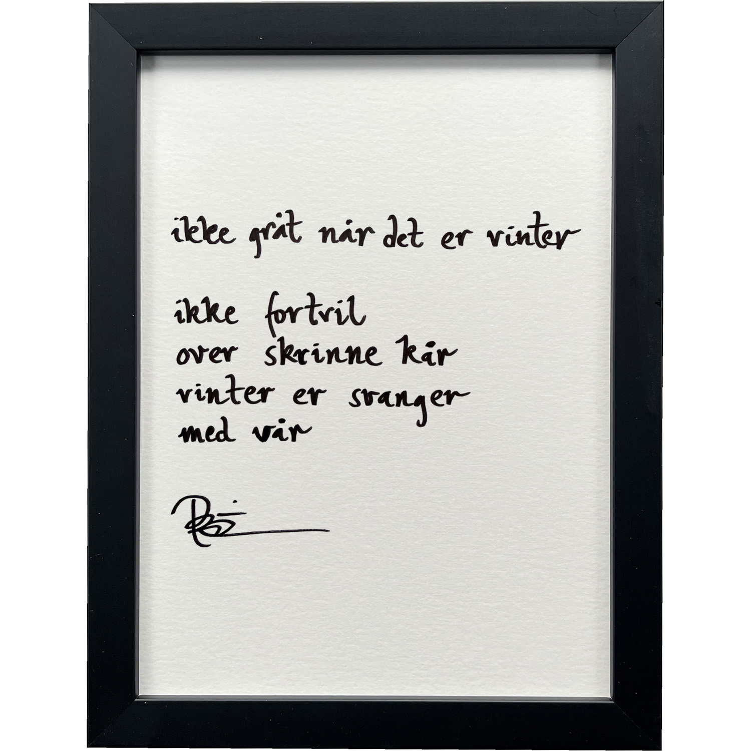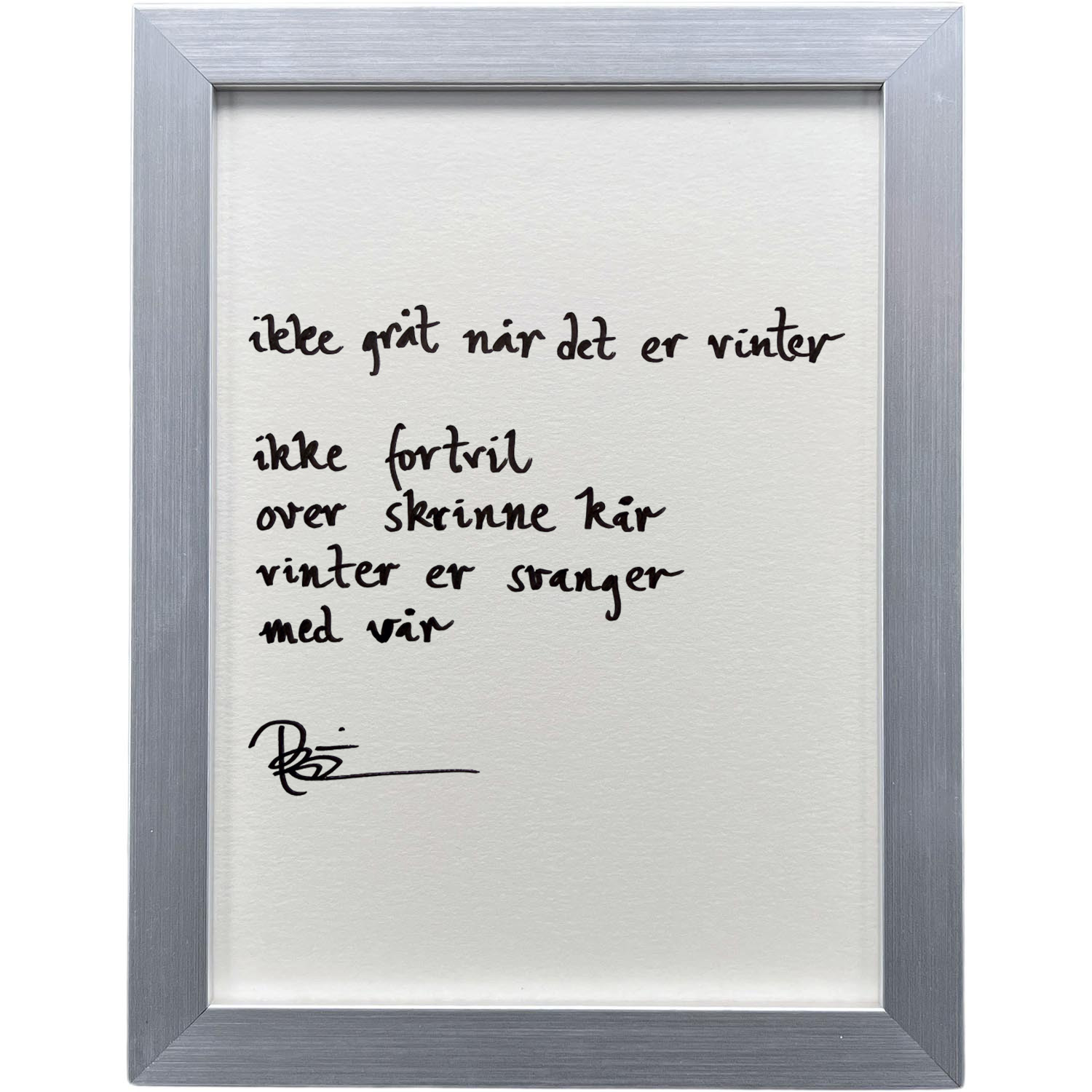 Håndskrevet og signert dikt på passepartout-papir. Passer fint til å henge ved siden av motivet det er skrevet til, eller settes på et bord eller en kommode.