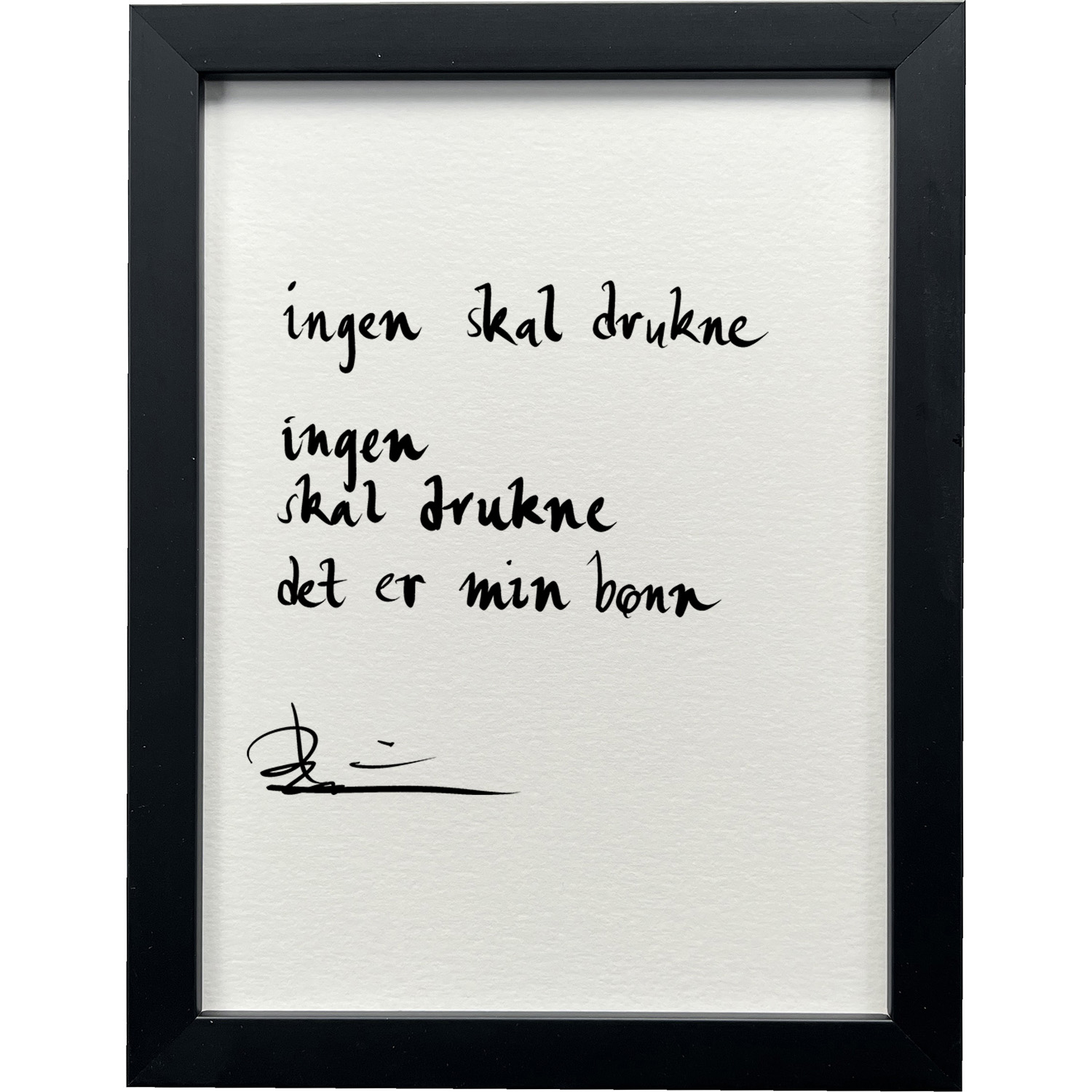 Sort ramme 20 x 26 cm "ingen skal drukne", dikt