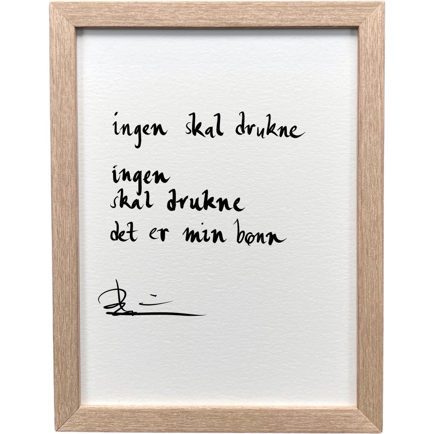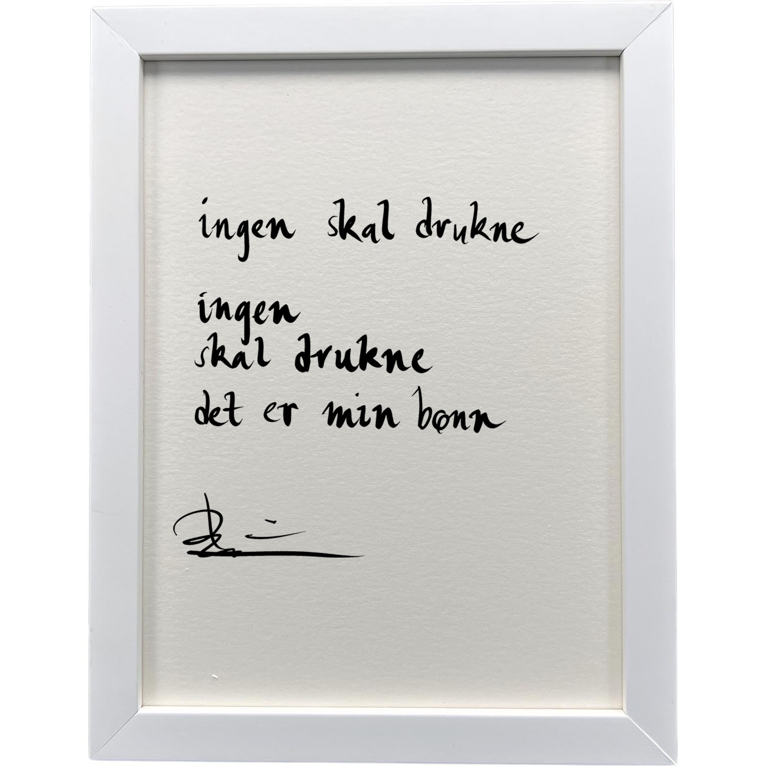 Hvit ramme 20 x 26 cm "ingen skal drukne", dikt