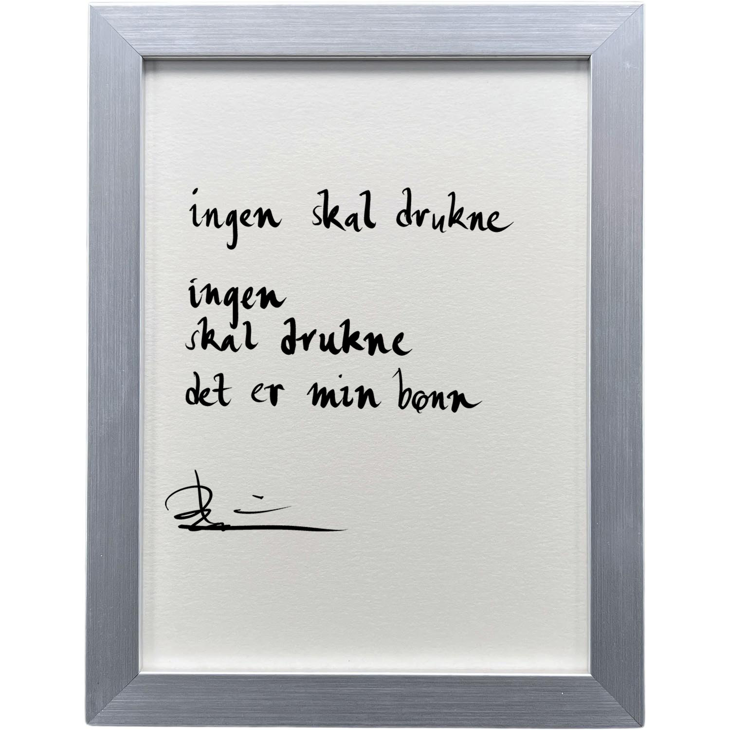 Sølvgrå ramme 20 x 26 cm "ingen skal drukne", dikt