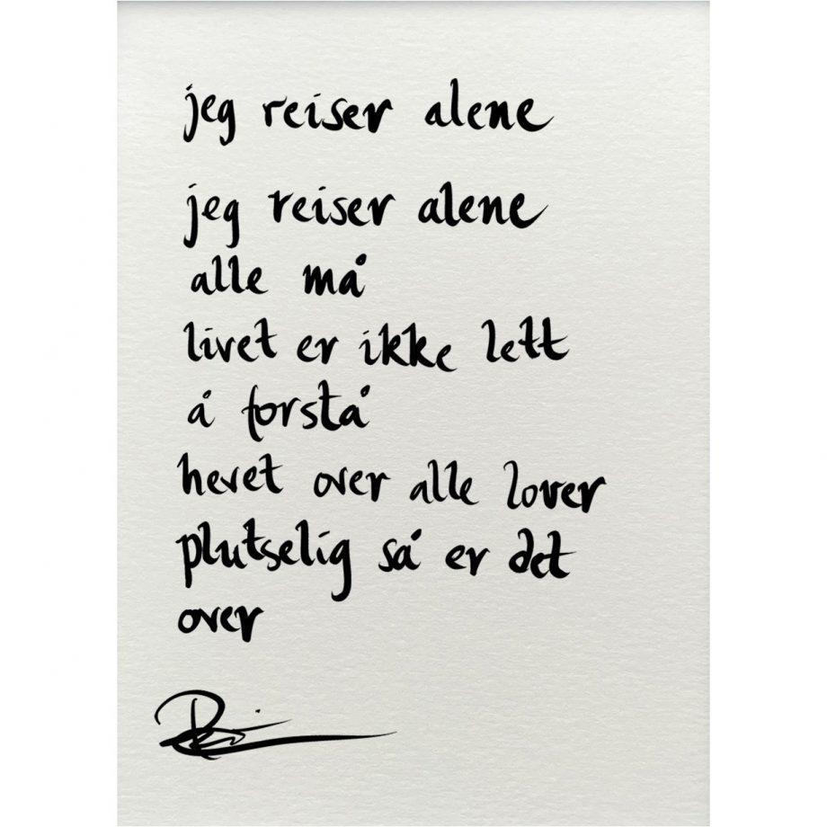 Håndskrevet og signert dikt på passepartout-papir. Passer fint til å henge ved siden av motivet det er skrevet til, eller settes på et bord eller en kommode.