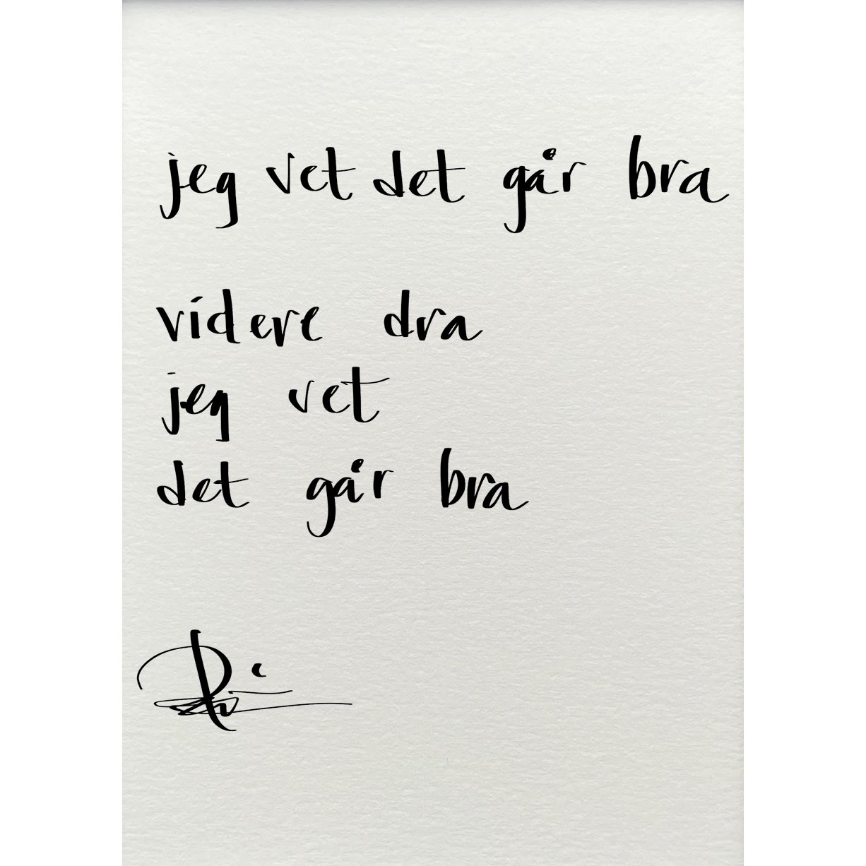Håndskrevet og signert dikt på passepartout-papir. Passer fint til å henge ved siden av motivet det er skrevet til, eller settes på et bord eller en kommode.