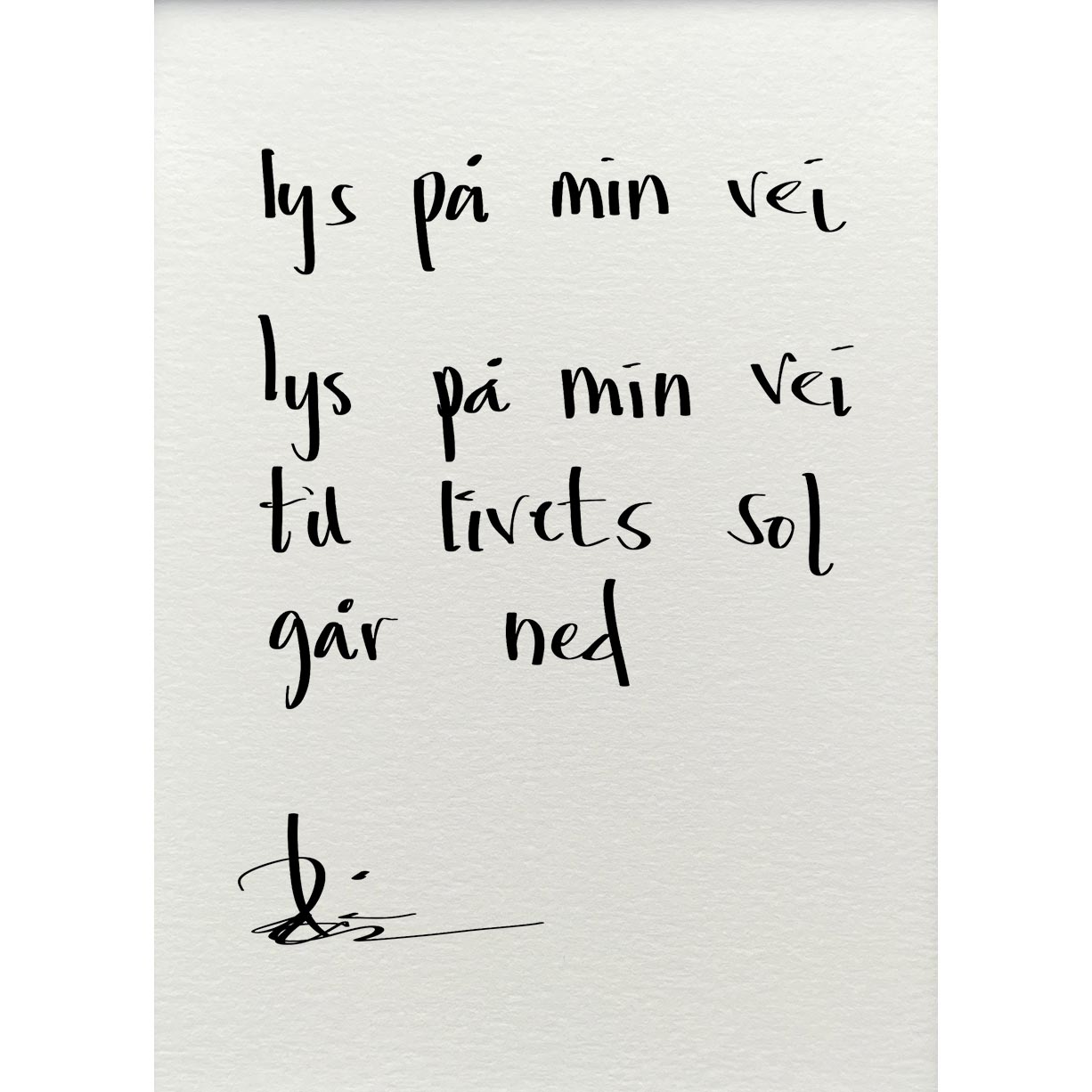 Håndskrevet og signert dikt på passepartout-papir. Passer fint til å henge ved siden av motivet det er skrevet til, eller settes på et bord eller en kommode.