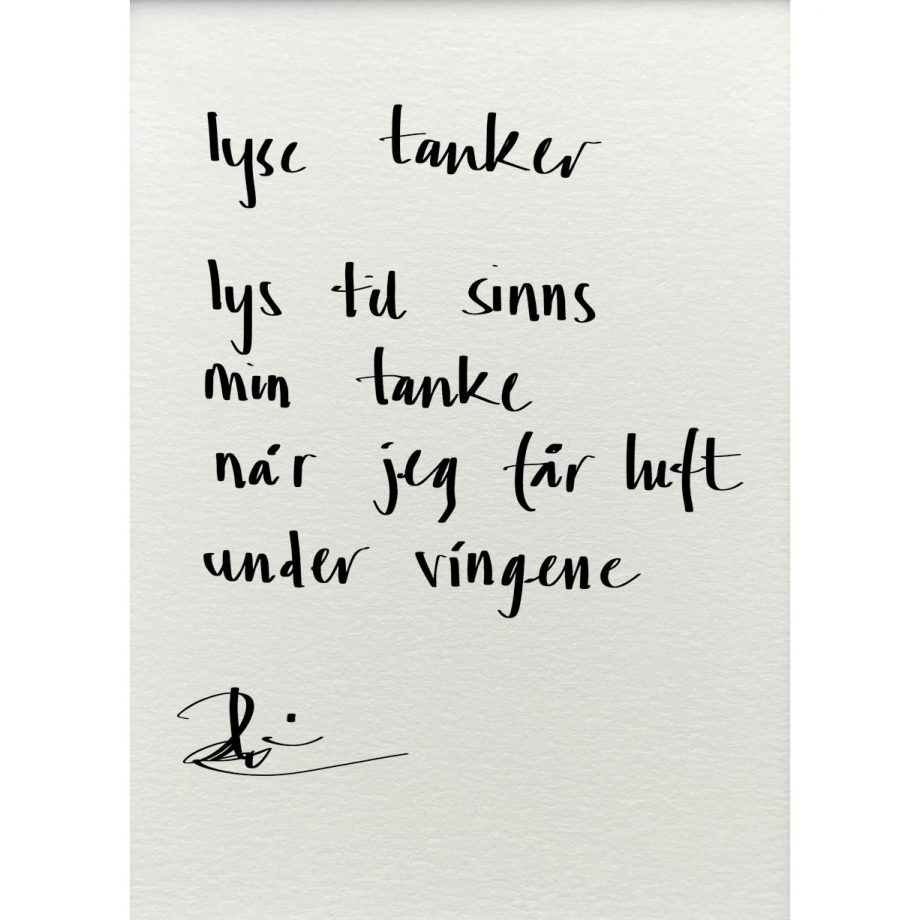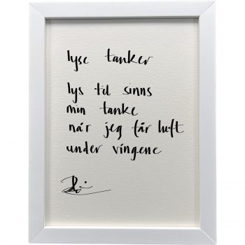 Håndskrevet og signert dikt på passepartout-papir. Passer fint til å henge ved siden av motivet det er skrevet til, eller settes på et bord eller en kommode.