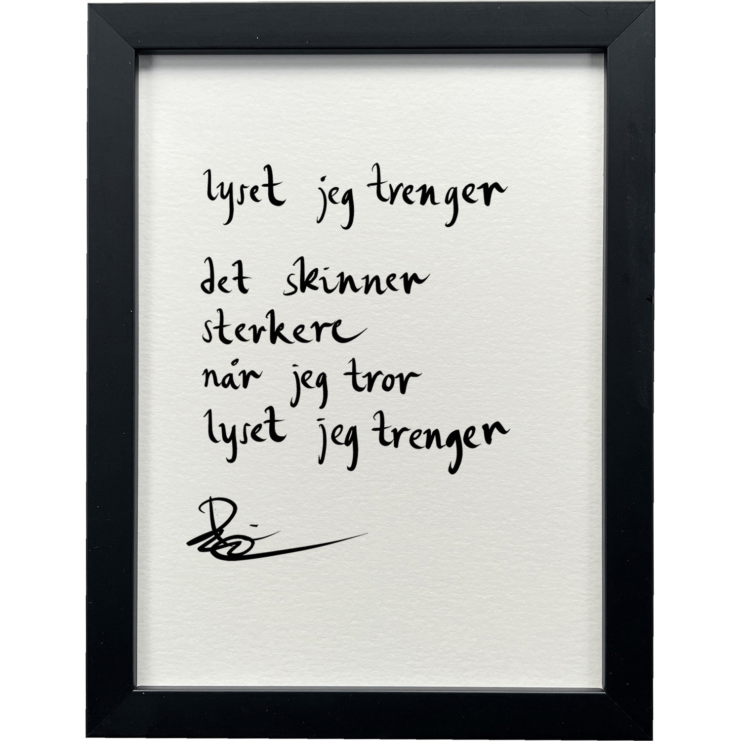 Sort ramme 20 x 26 cm "lyset jeg trenger", dikt