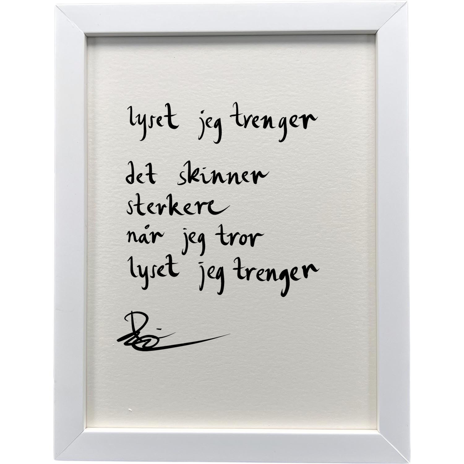 Hvit ramme 20 x 26 cm "lyset jeg trenger", dikt