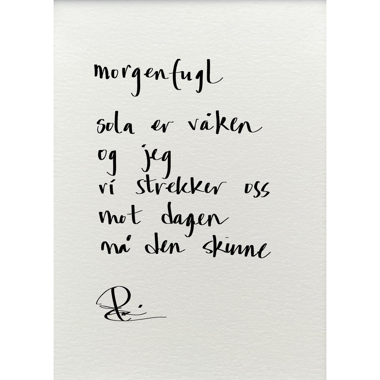 Håndskrevet og signert dikt på passepartout-papir. Passer fint til å henge ved siden av motivet det er skrevet til, eller settes på et bord eller en kommode.