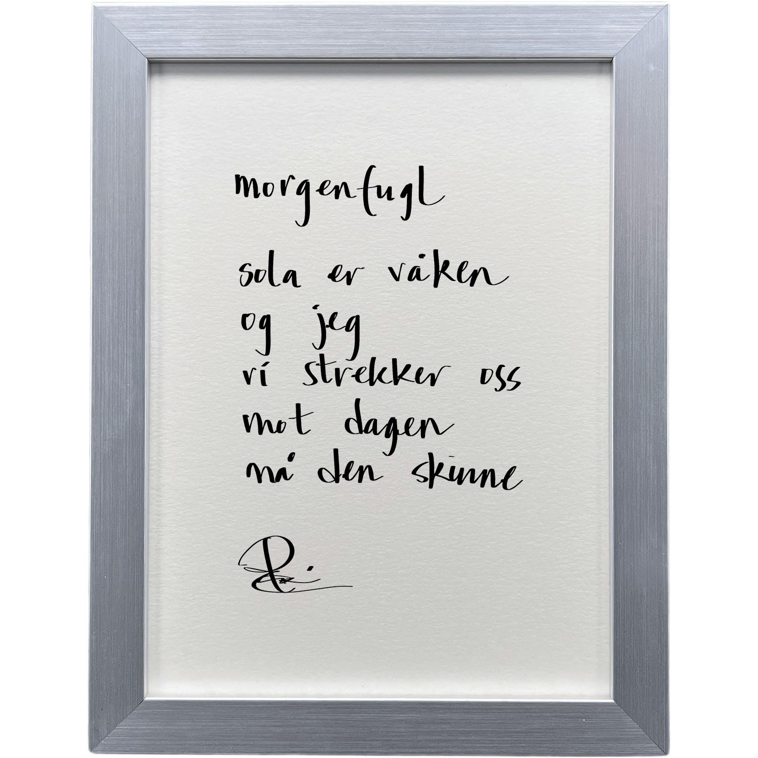 Diktet kan leveres ferdig innrammet fra min profesjonell rammemaker Innramming.no: