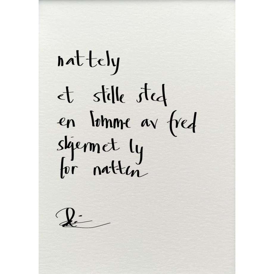 Håndskrevet og signert dikt på passepartout-papir. Passer fint til å henge ved siden av motivet det er skrevet til, eller settes på et bord eller en kommode.