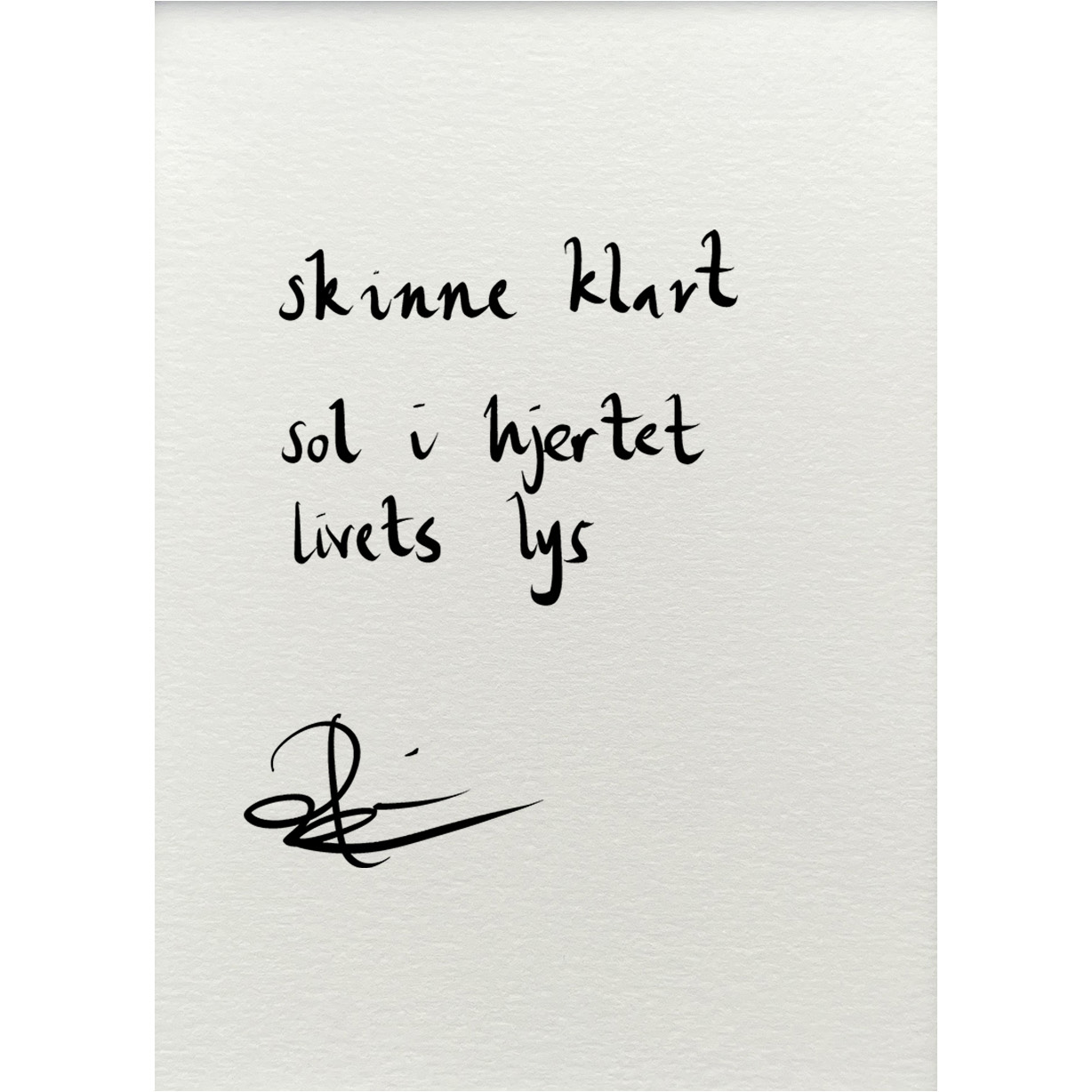 Håndskrevet og signert dikt på passepartout-papir. Passer fint til å henge ved siden av motivet det er skrevet til, eller settes på et bord eller en kommode.