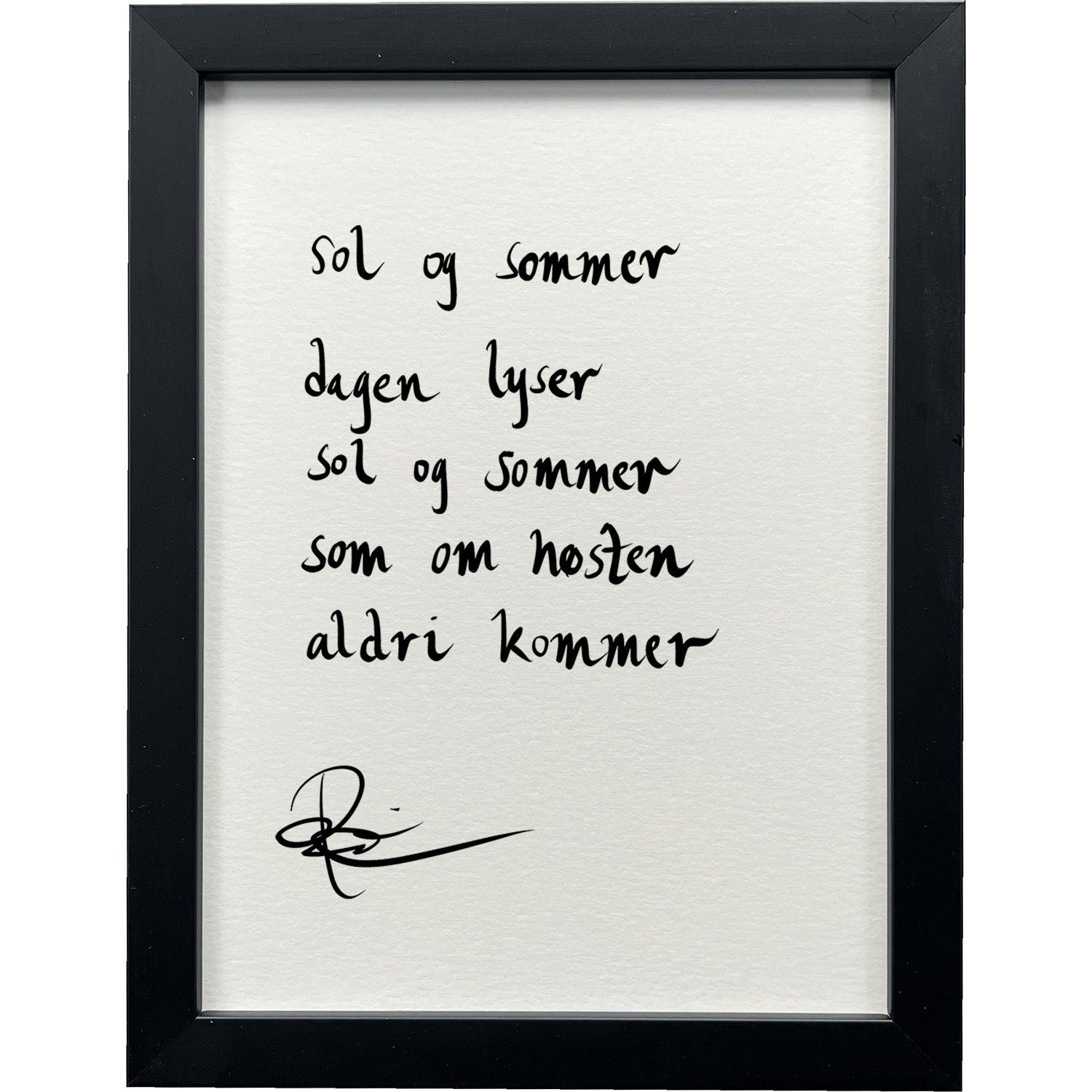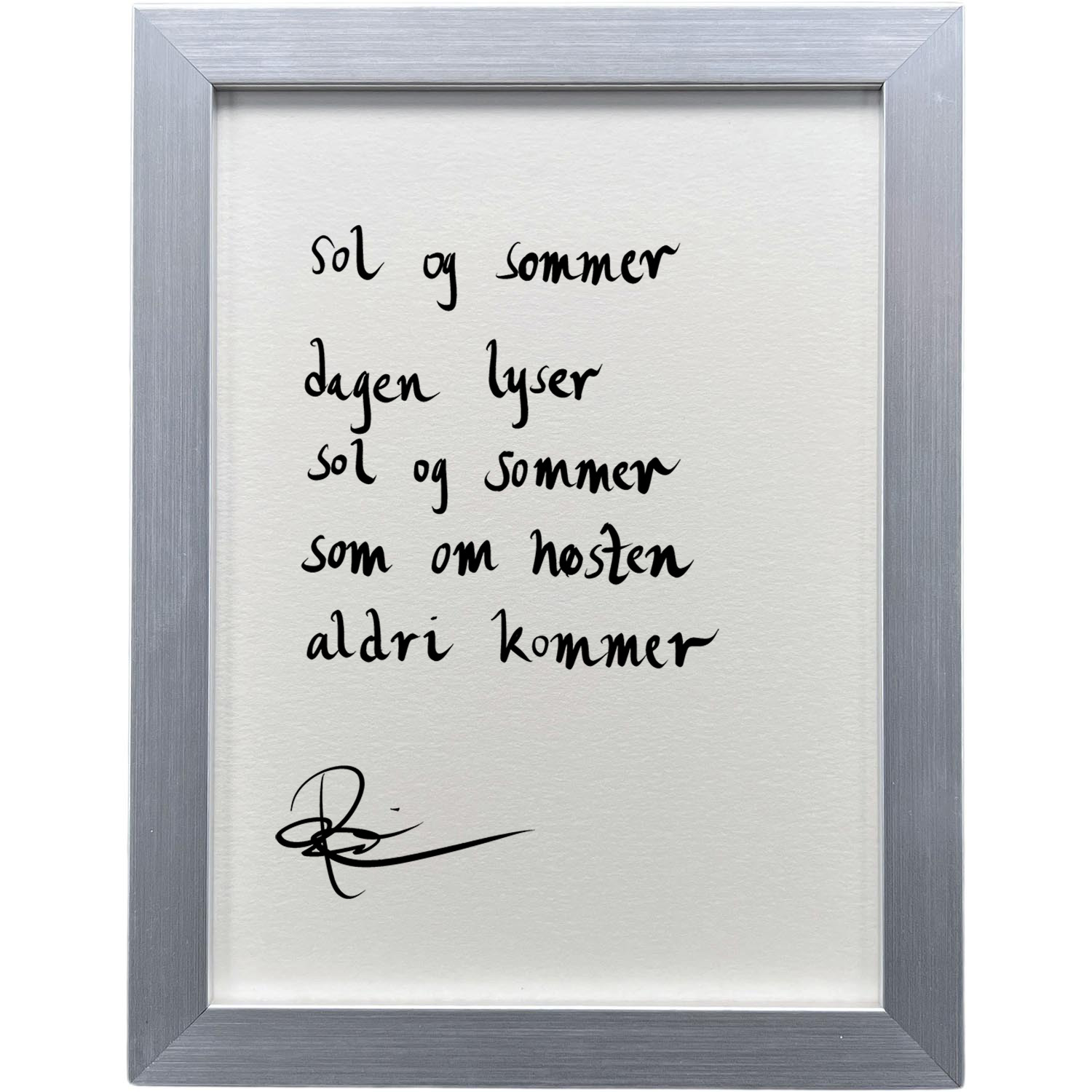 Diktet kan leveres ferdig innrammet fra min profesjonell rammemaker Innramming.no: