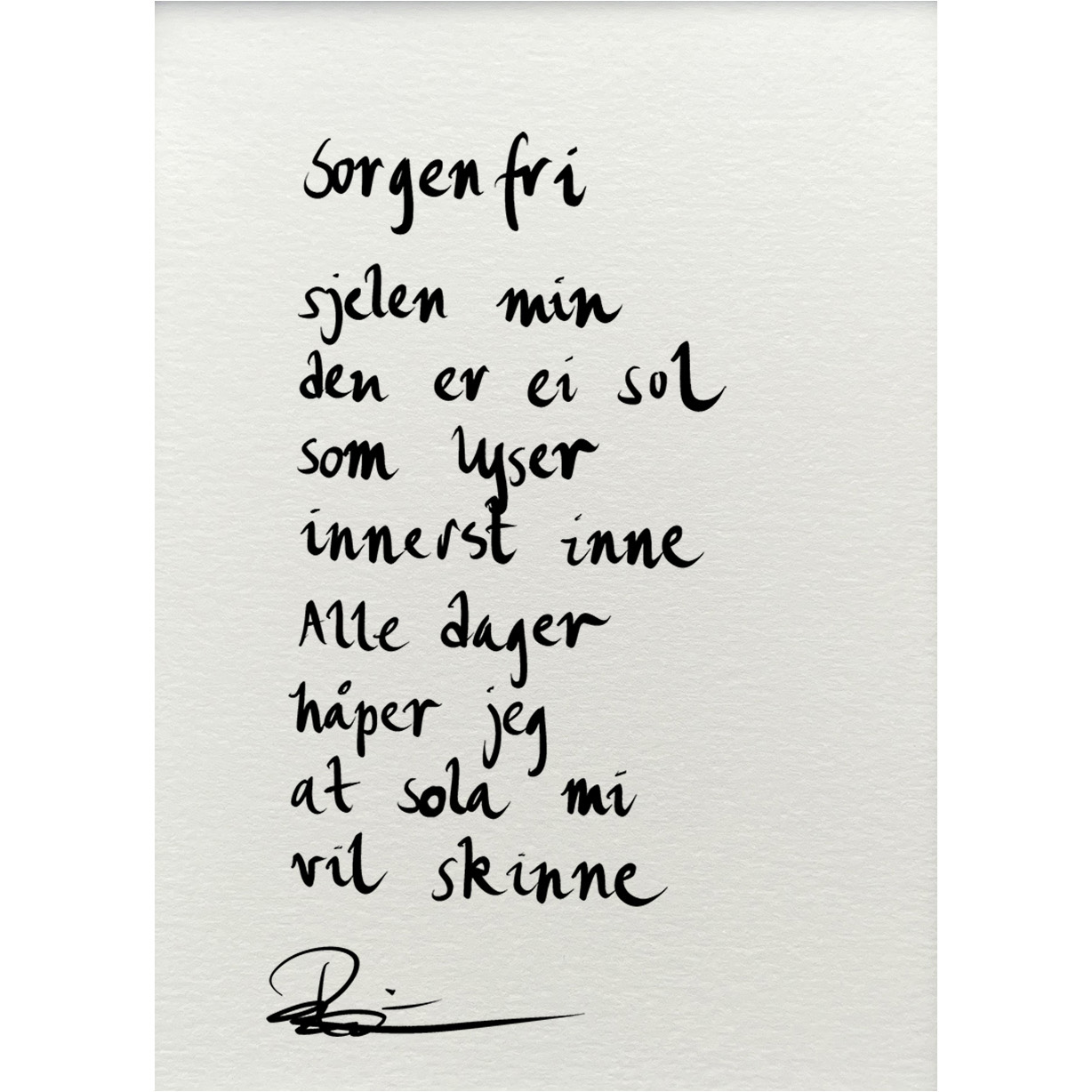 Håndskrevet og signert dikt på passepartout-papir. Passer fint til å henge ved siden av motivet det er skrevet til, eller settes på et bord eller en kommode.