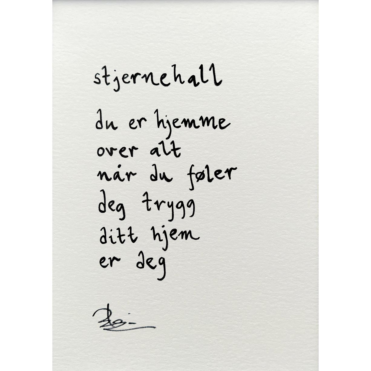 Håndskrevet og signert dikt på passepartout-papir. Passer fint til å henge ved siden av motivet det er skrevet til, eller settes på et bord eller en kommode.