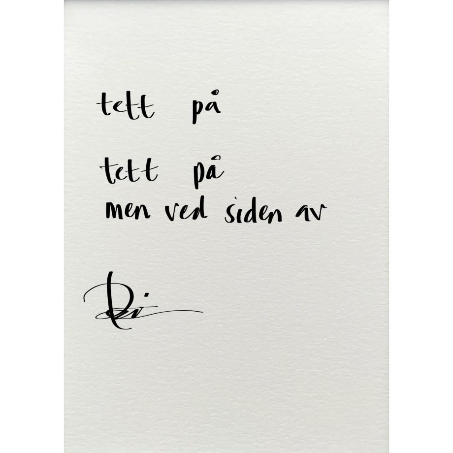 Håndskrevet og signert dikt på passepartout-papir. Passer fint til å henge ved siden av motivet det er skrevet til, eller settes på et bord eller en kommode.
