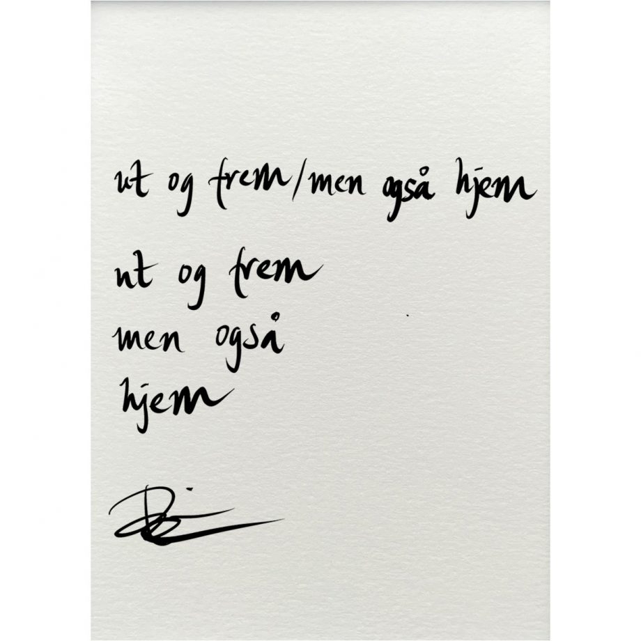 Håndskrevet og signert dikt på passepartout-papir. Passer fint til å henge ved siden av motivet det er skrevet til, eller settes på et bord eller en kommode.