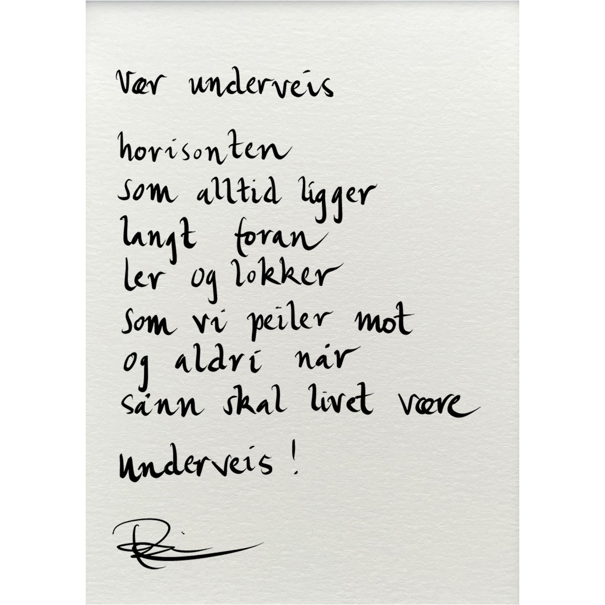 Håndskrevet og signert dikt på passepartout-papir. Passer fint til å henge ved siden av motivet det er skrevet til, eller settes på et bord eller en kommode.