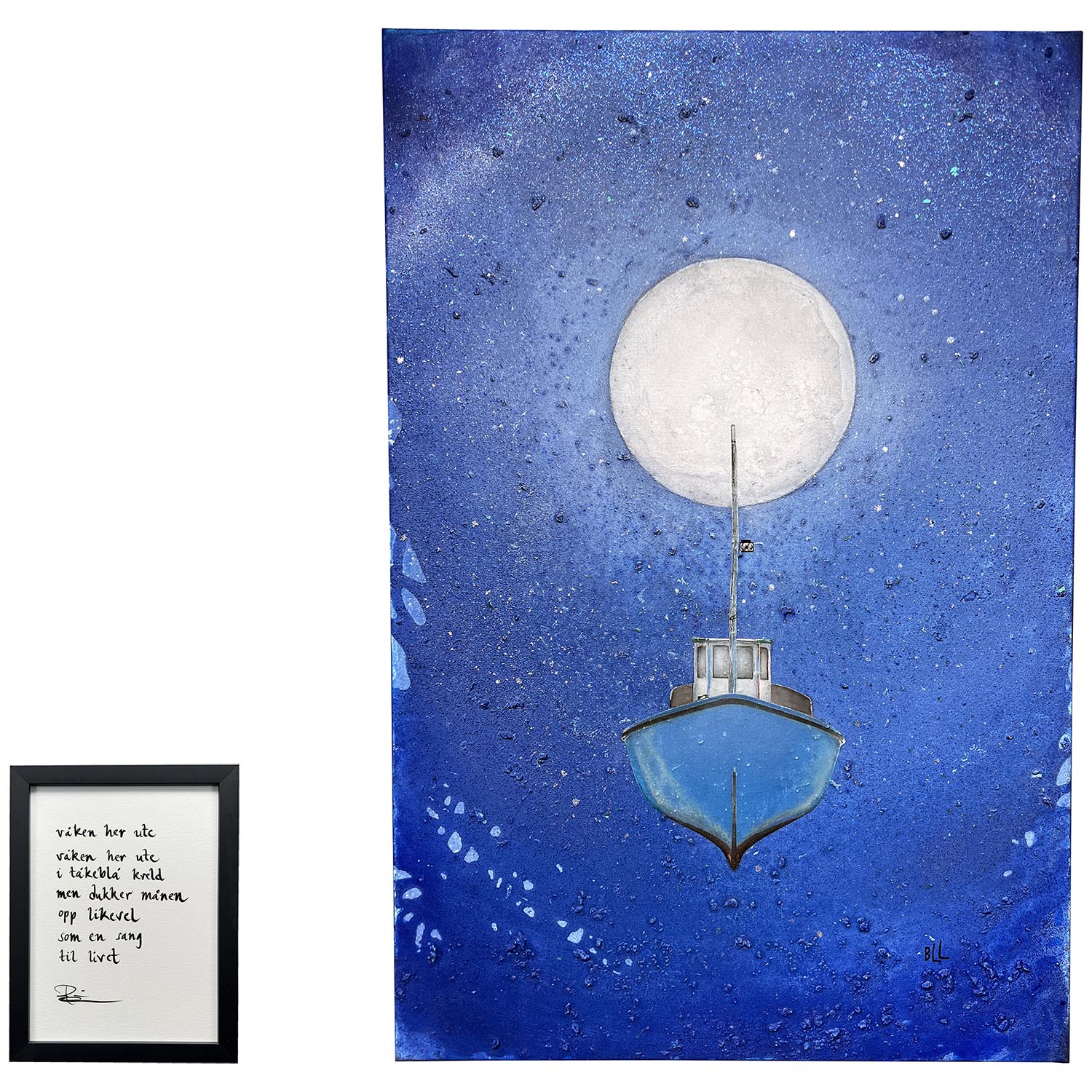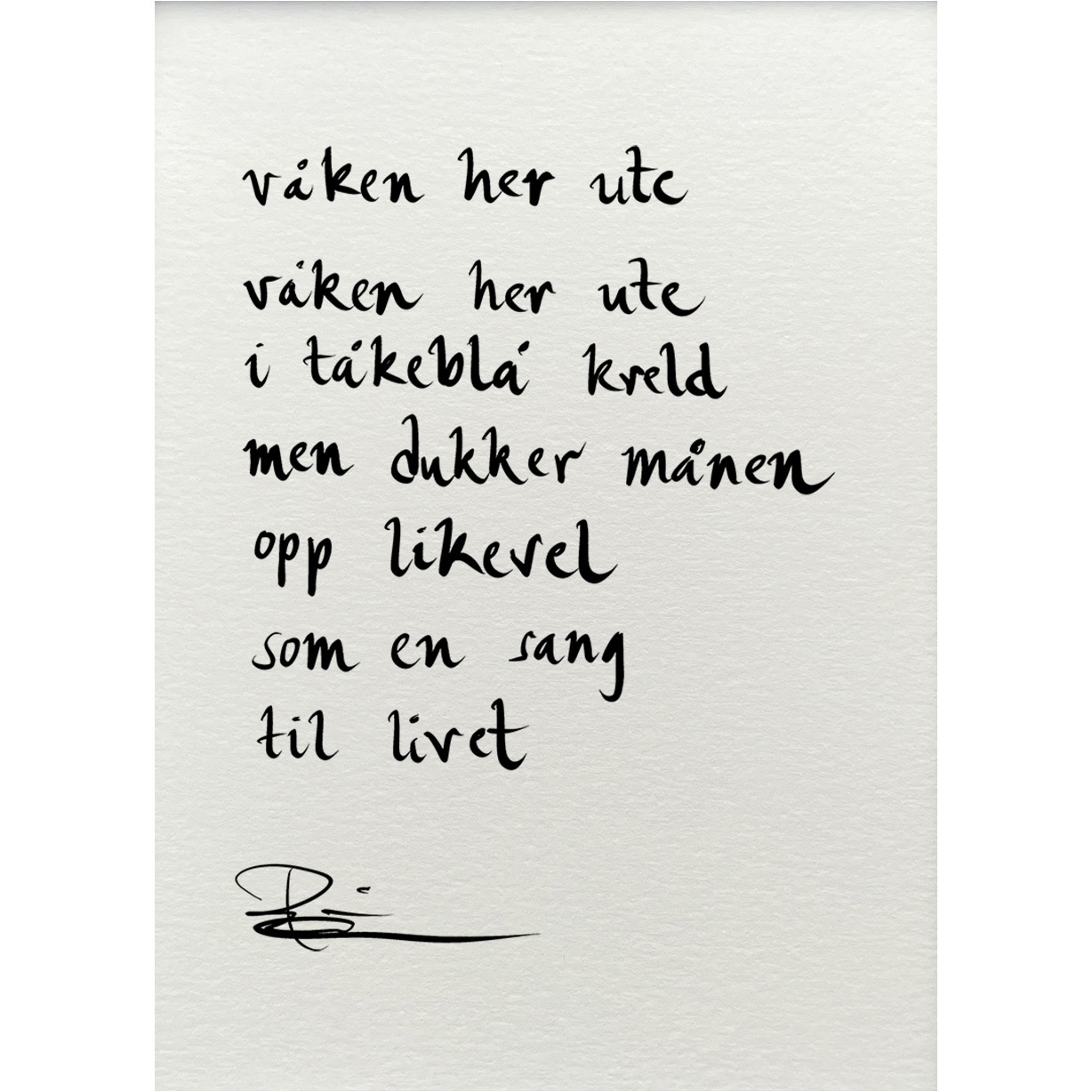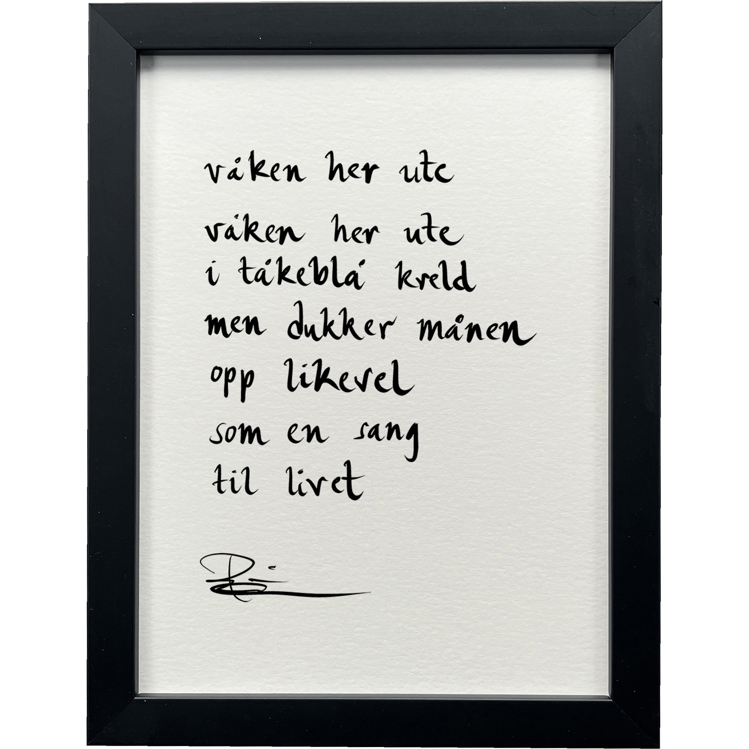 Håndskrevet og signert dikt på passepartout-papir. Passer fint til å henge ved siden av motivet det er skrevet til, eller settes på et bord eller en kommode.