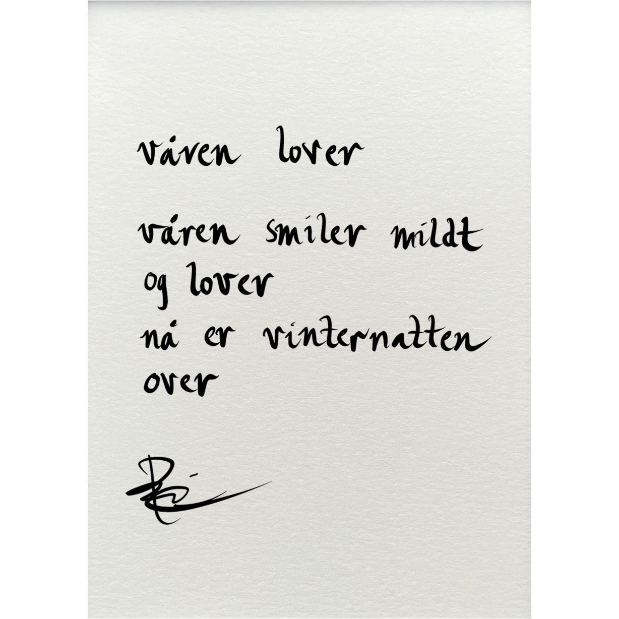 Håndskrevet og signert dikt på passepartout-papir. Passer fint til å henge ved siden av motivet det er skrevet til, eller settes på et bord eller en kommode.