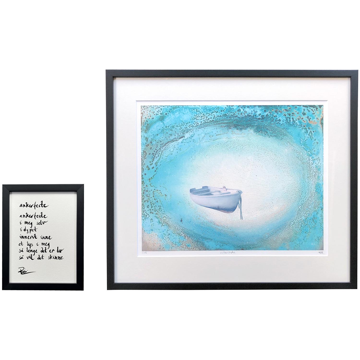 Trykket kan leveres ferdig innrammet fra profesjonell rammemaker:
