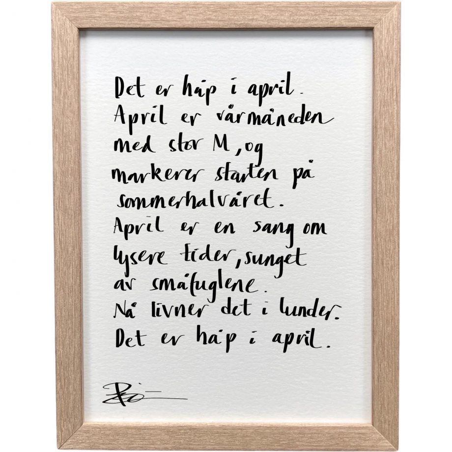 Eikeramme 20 x 26 cm «håp april», tekst