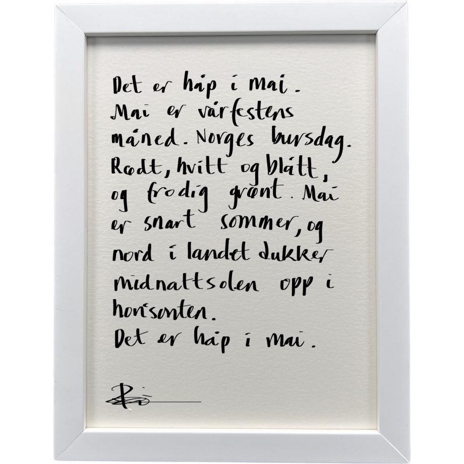 Hvit ramme 20 x 26 cm «håp mai», tekst