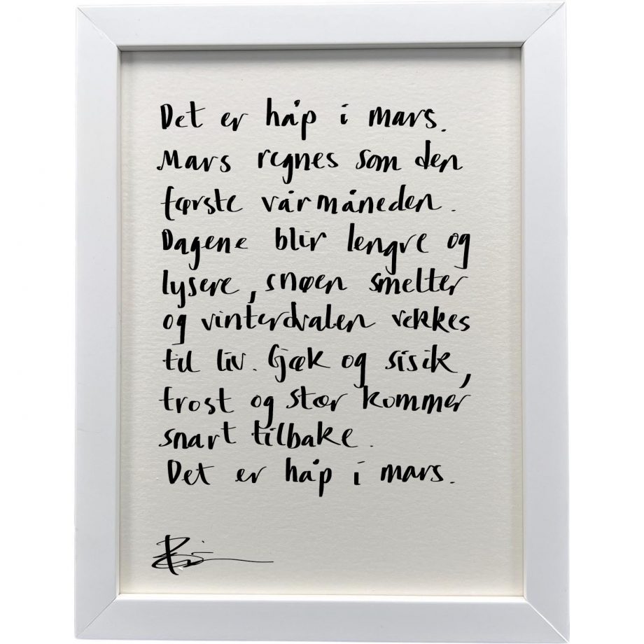 Hvit ramme 20 x 26 cm «håp mars», tekst