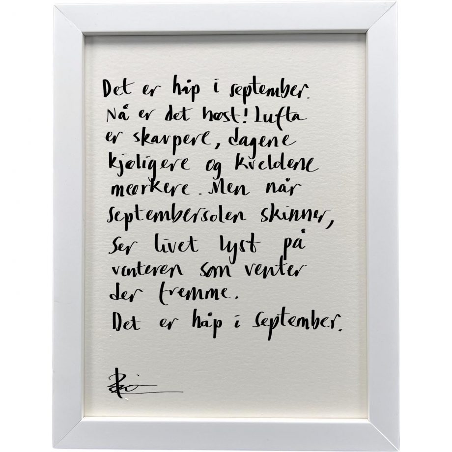 Hvit ramme 20 x 26 cm «håp september», tekst
