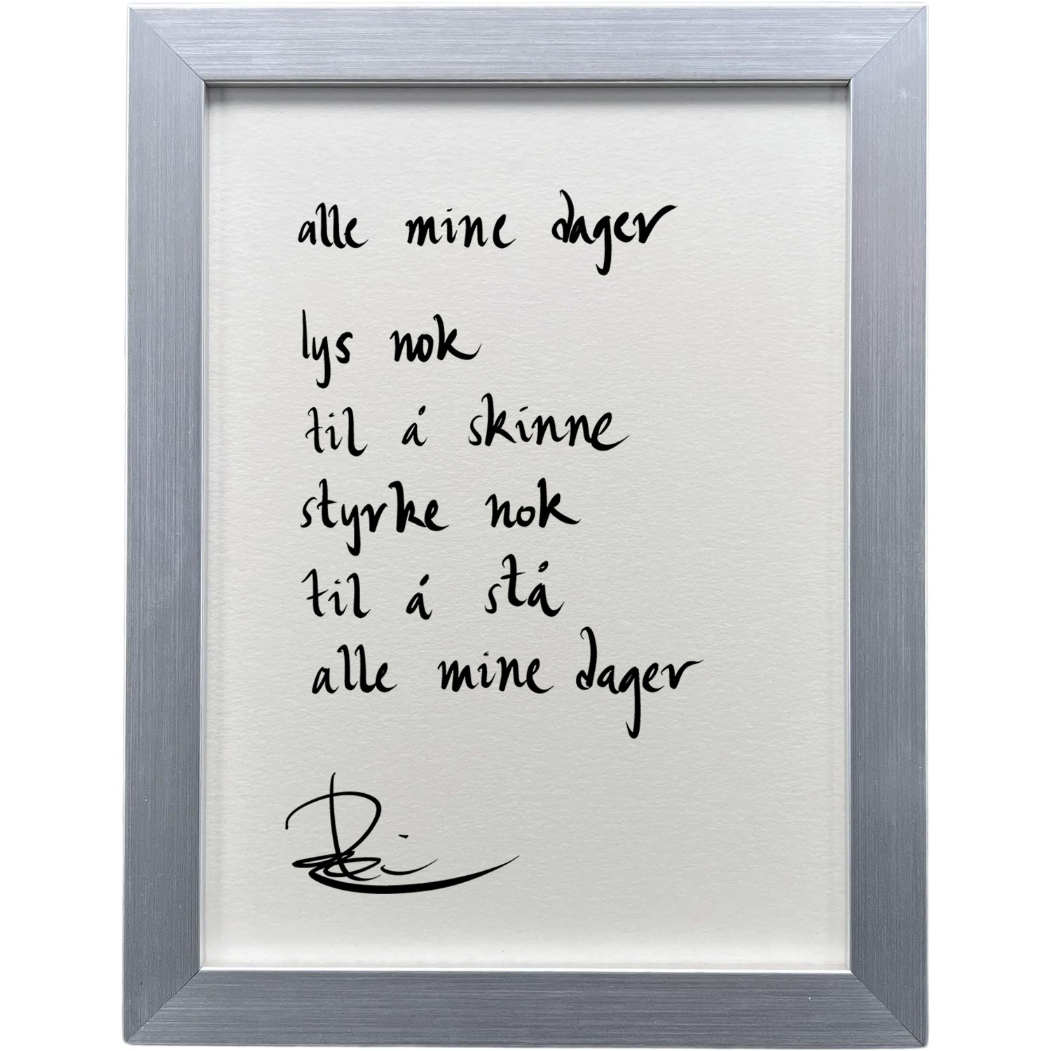 Sølvgrå ramme 20 x 26 cm «alle mine dager», dikt