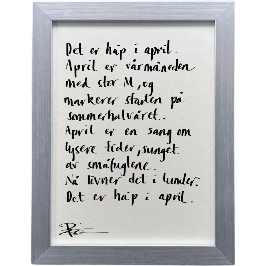 Sølvgrå ramme 20 x 26 cm «håp april», tekst