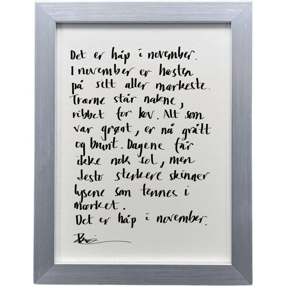 Sølvgrå ramme 20 x 26 cm «håp november», tekst