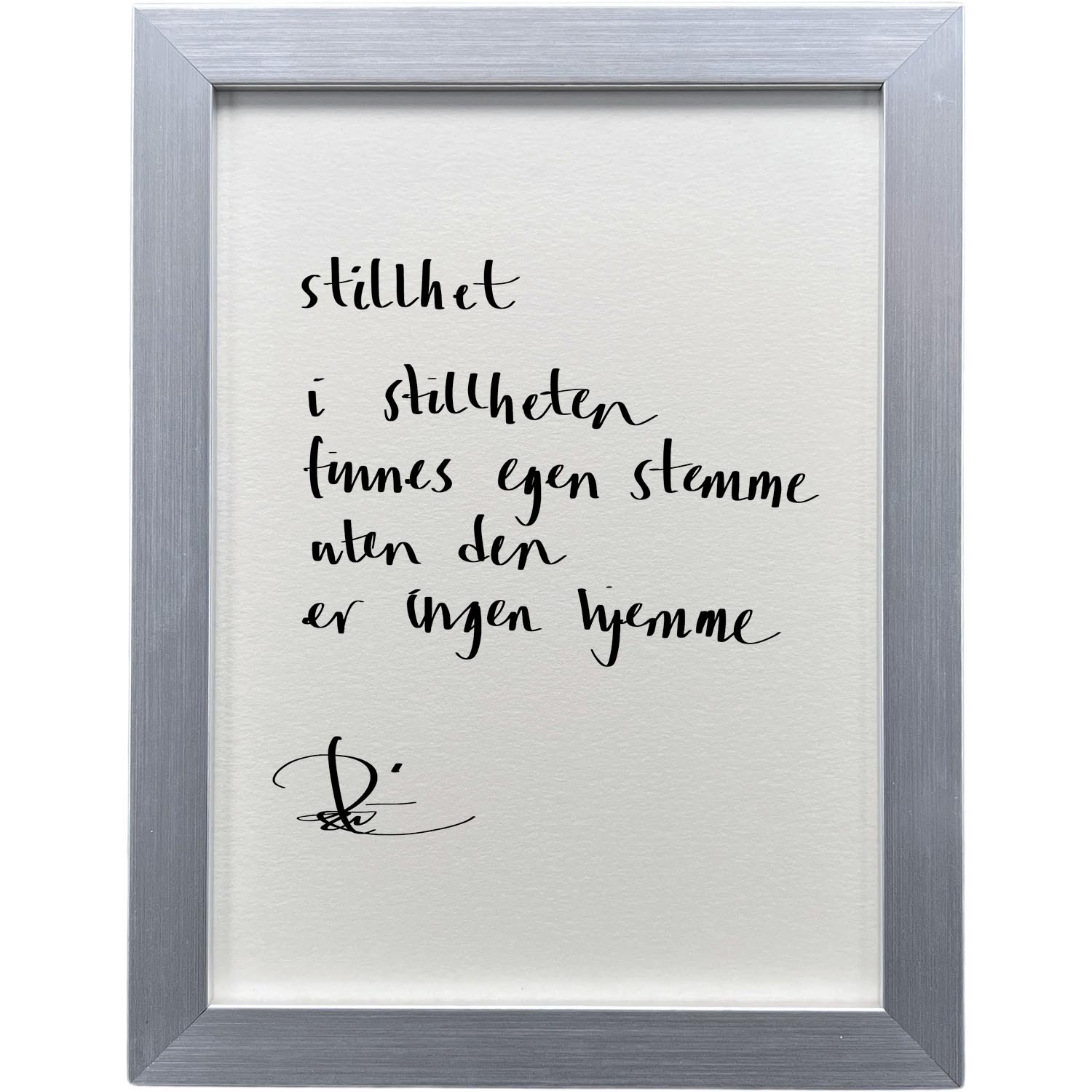 Sølvgrå ramme 20 x 26 cm «stillhet», dikt