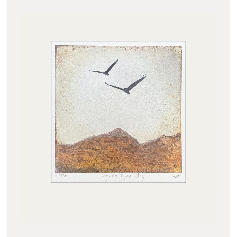 Nummerert og signert gicléetrykk på Arches 270 gram/m2 syrefritt akvarellpapir i 100 % bomull. Opplag: 250. Motivformat: 17 x 17 cm.
