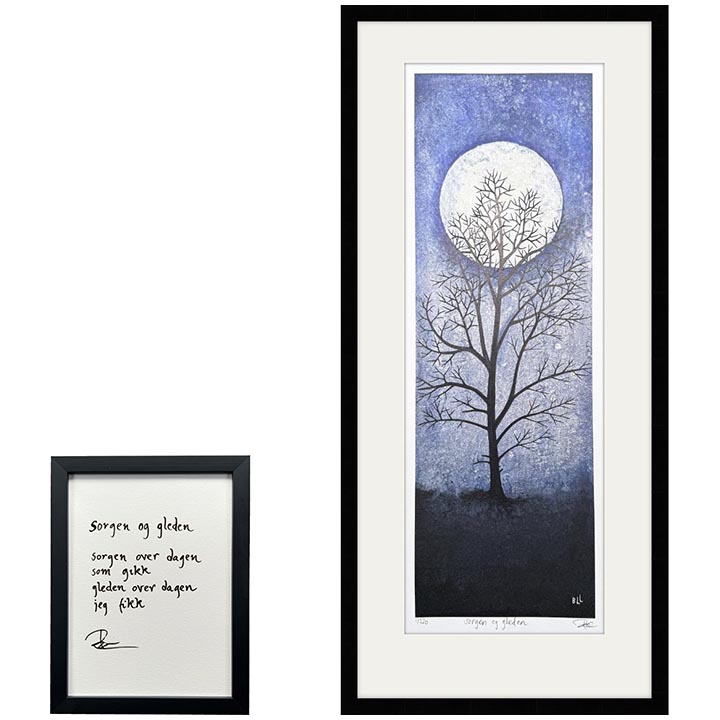 Eikeramme 35 x 71 cm "sorgen og gleden", trykk