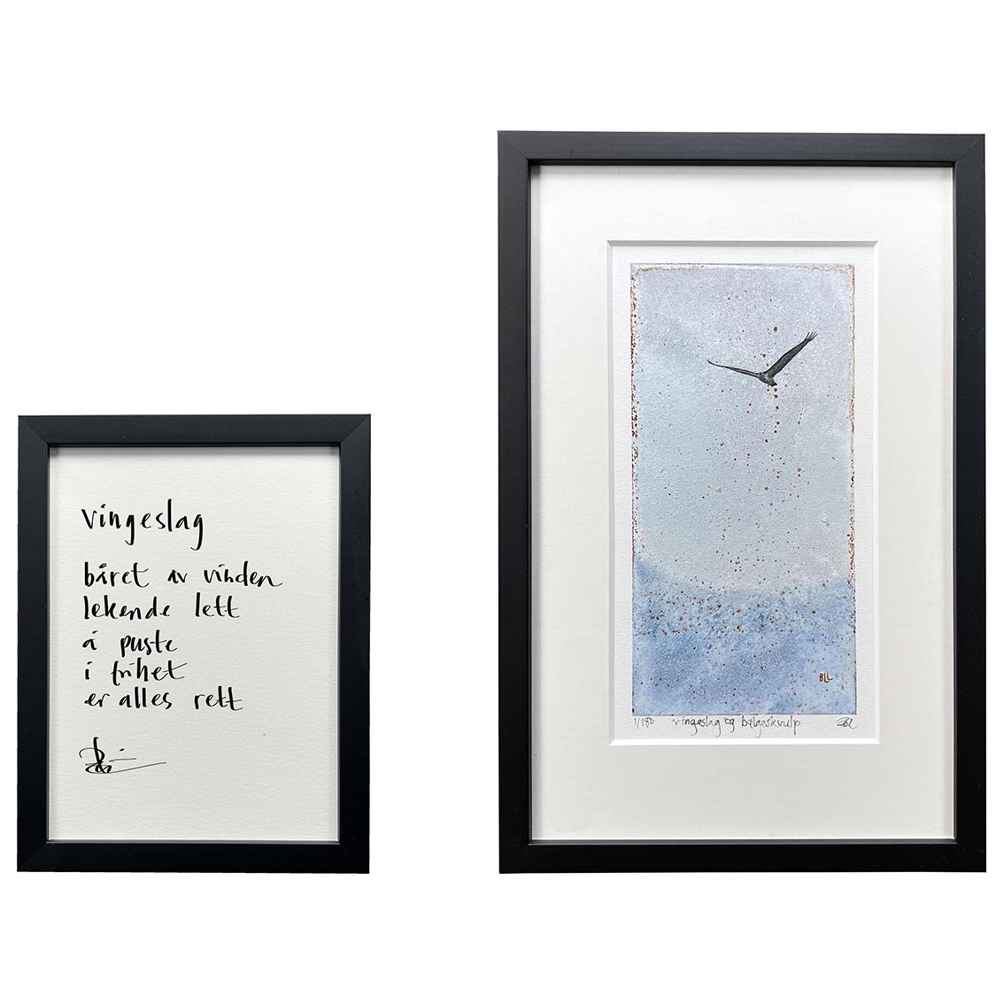 Sort ramme 28 x 42 cm "vingeslag", trykk