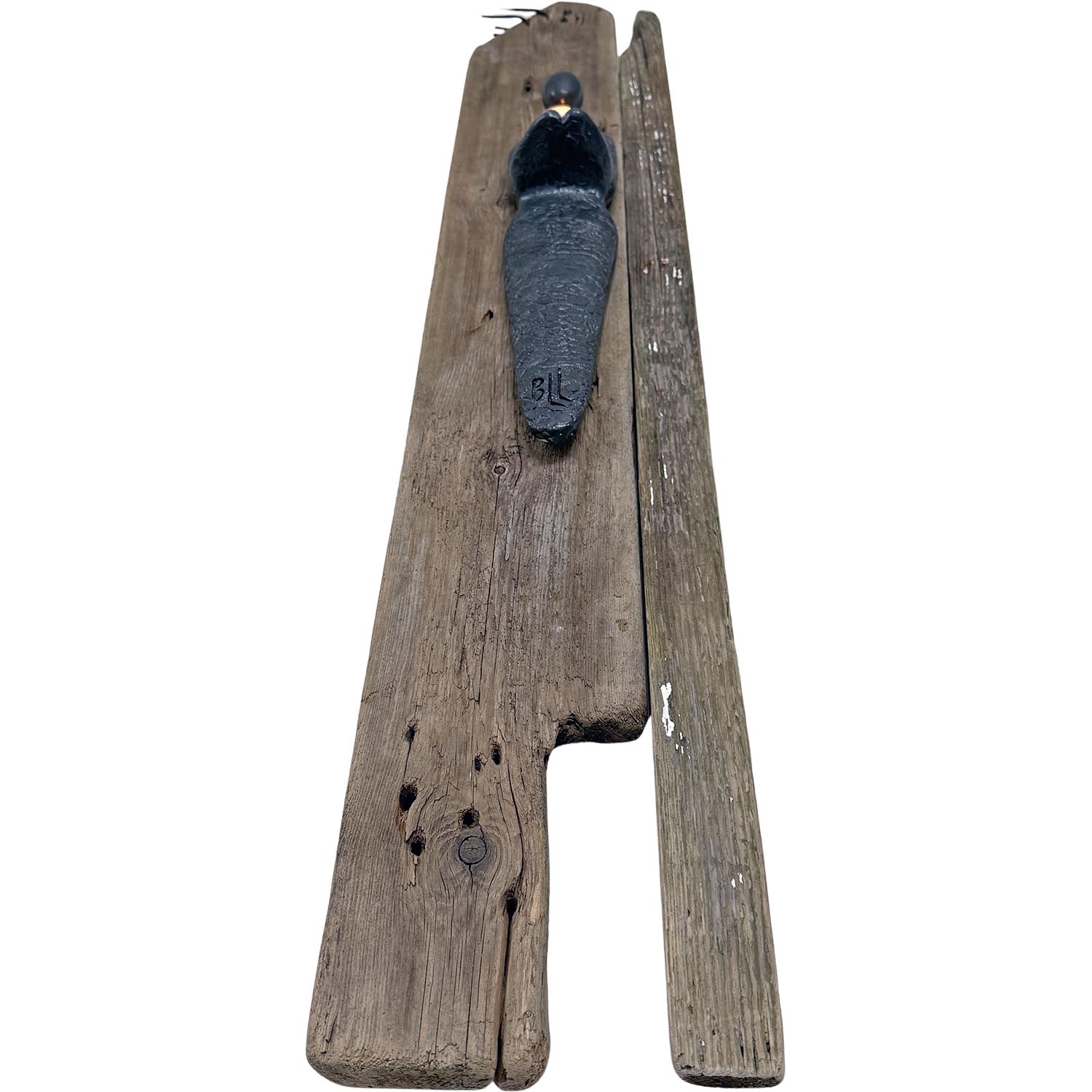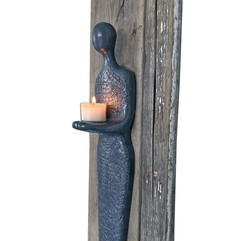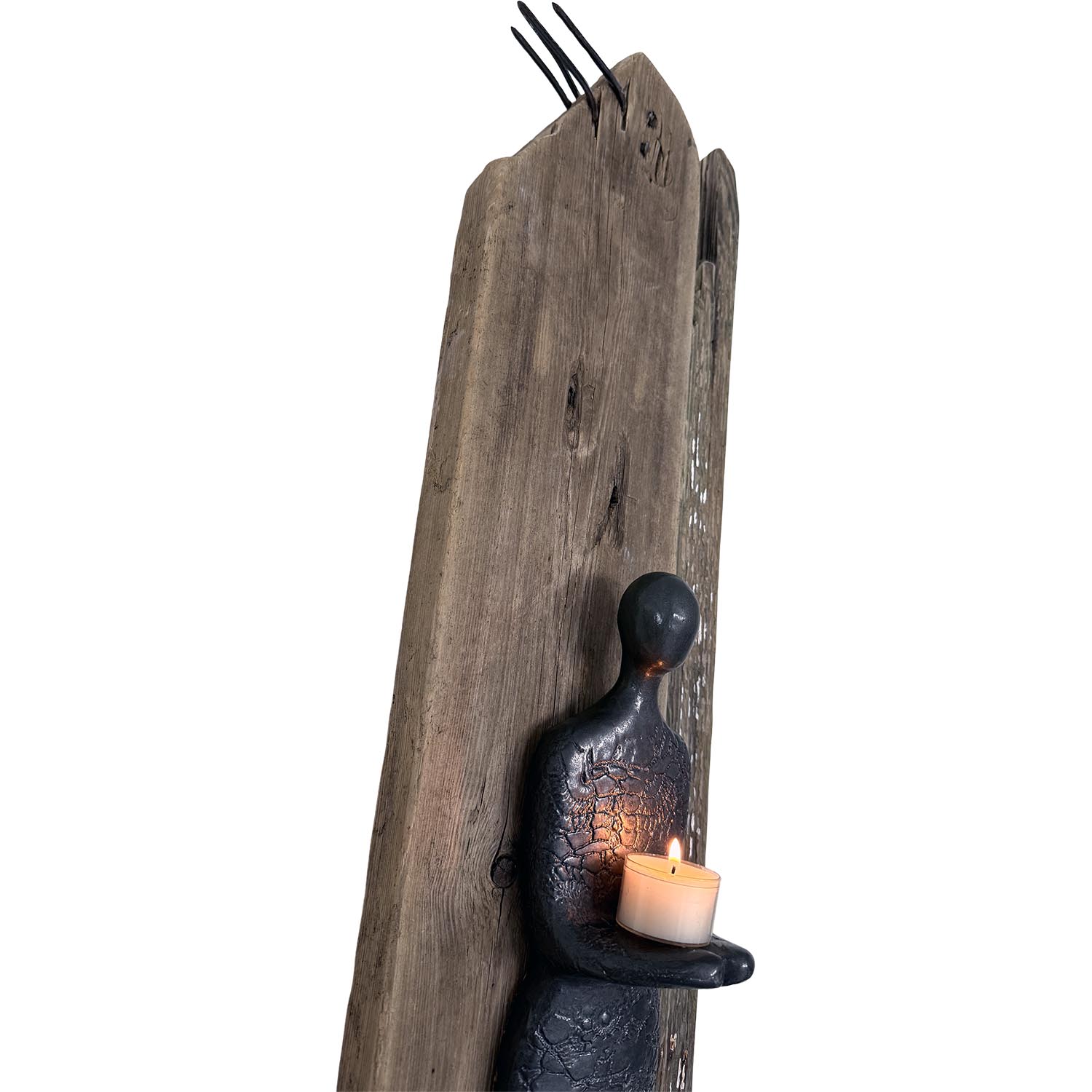 Keramisk lysdame/relieff montert på kraftig og behandlet rekved. Rekveden er sanket i fjæra. Originalt kunstverk – finnes bare i èn utgave. Selve skulpturen er i keramikk. Leveres ferdig med oppheng.